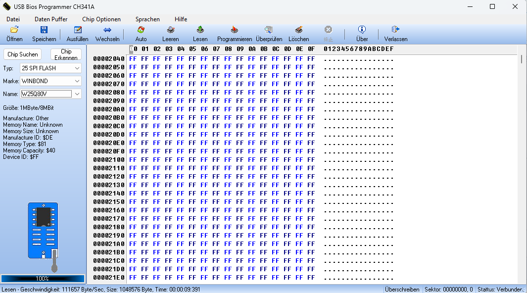 SiberiaProg CH341A v1.45 detect ic XM25QH265B