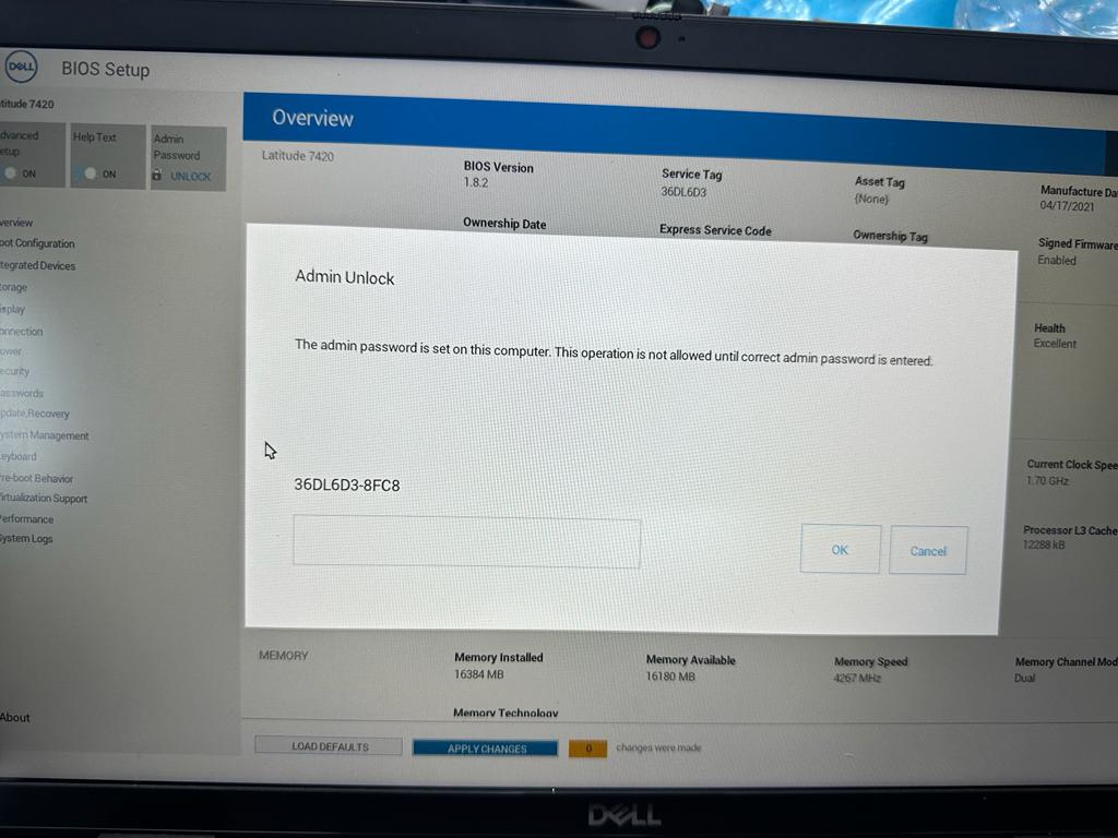 Re: Bios unlock for DELL LATITUDE 7420