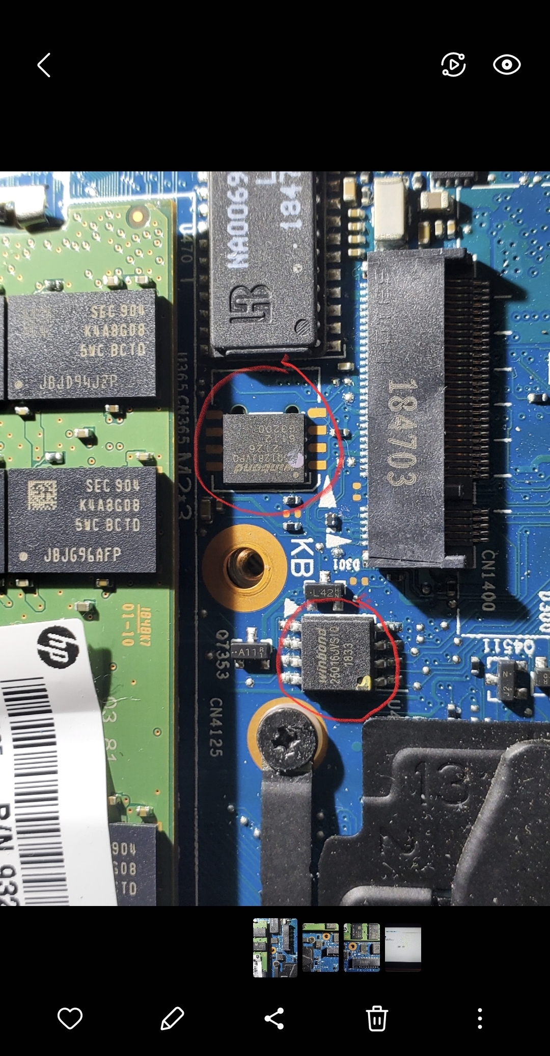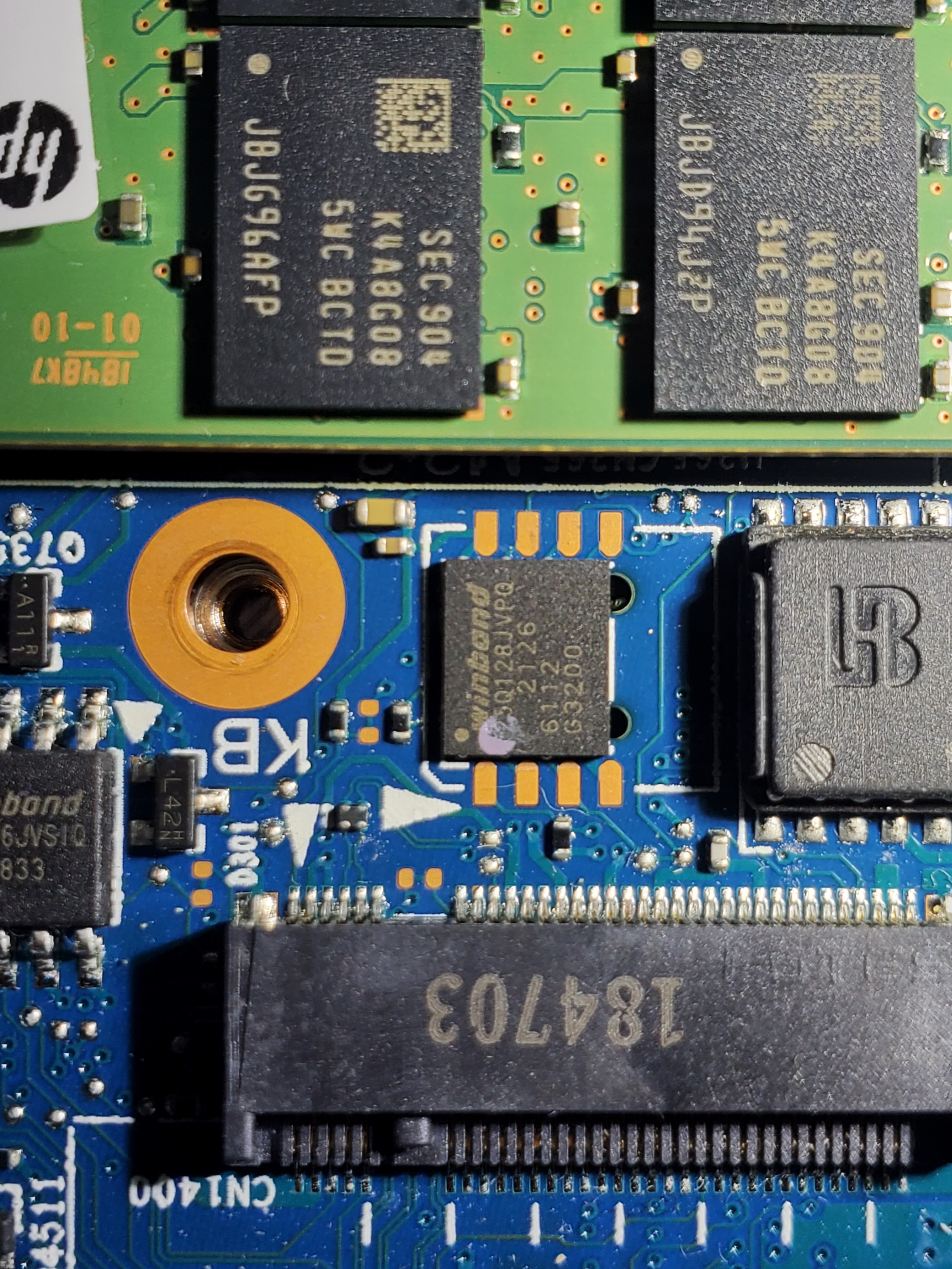 I was running updates earlier on my HP Elitebook 735 G5, they included a bios update and a biometic update, and when it restarted to finish installing the updates my fingerprints and pin no longer worked on the Power On Authentication screen. I just ordered a CH341A with the SOIC8 clip and have never done this before. I want to make sure I've identified the right chips to flash and have seen you've dealt with this model before. Are the chips in the pics attached the correct ones?