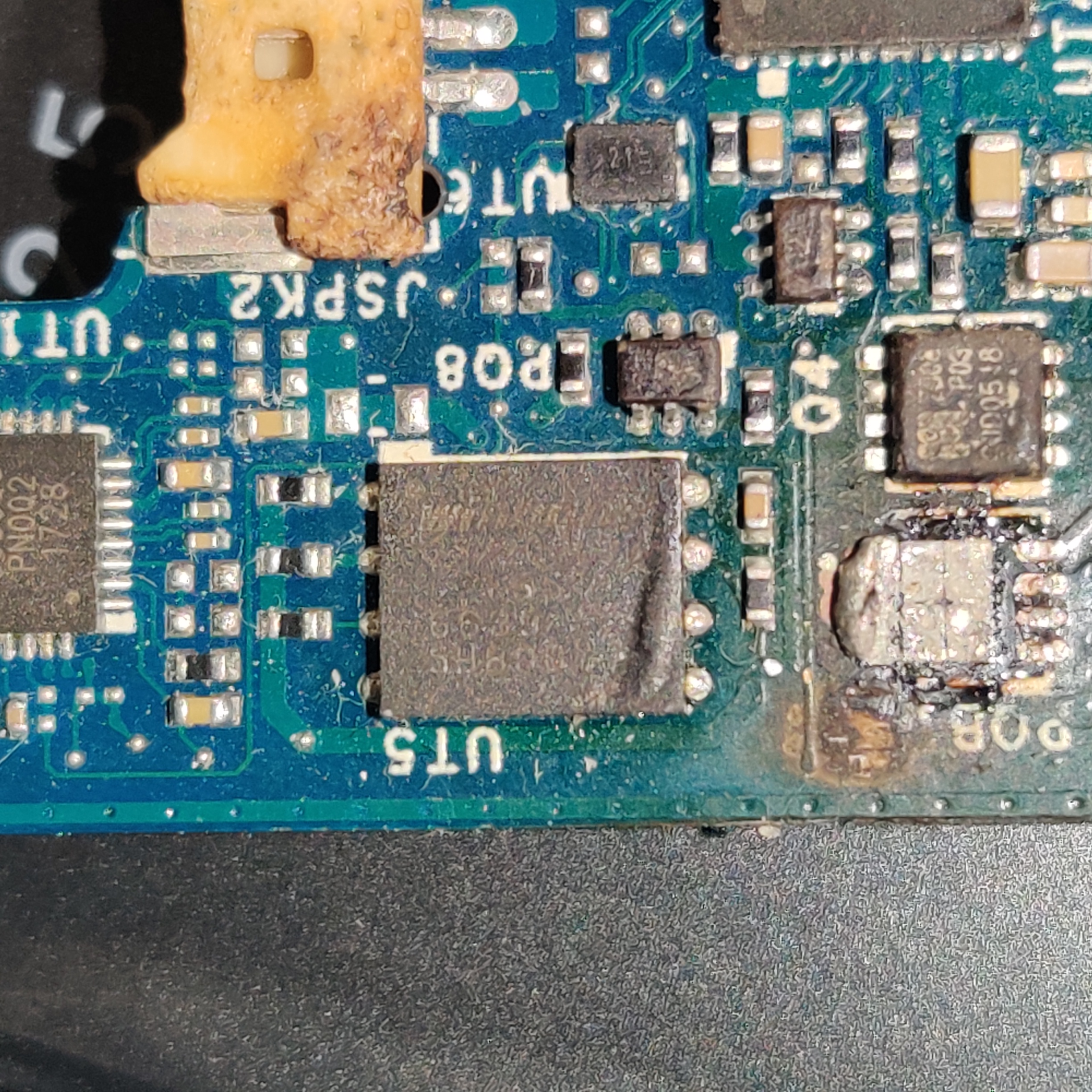 I have a broken Spectre and I need some advice. After opening up the laptop it turned out some chip was exploded/damaged and I see some melted plastic near the connector of the speaker.
