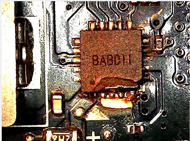 Its located on top board back the HDMI port and near 2 big 1,5 ohm resistors.