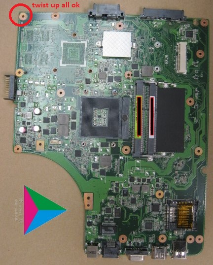 In the other thread, I have the Asus K53sv mobo, also no marks and no schematics.