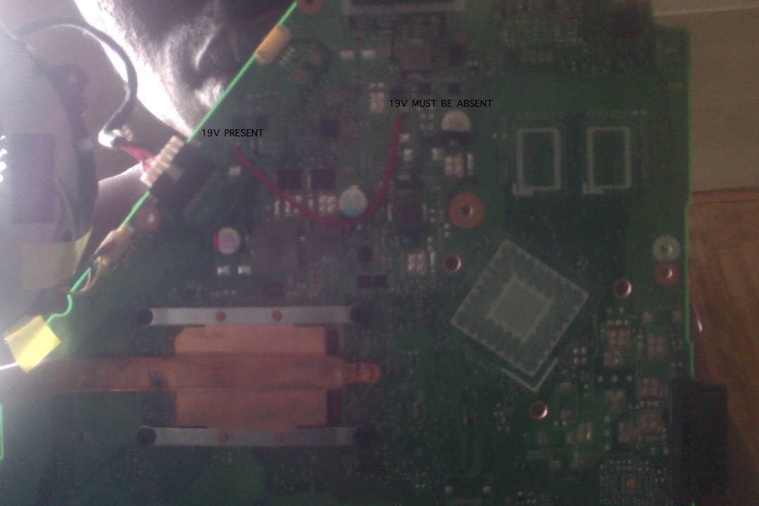 I don't get any 5V or 3.3V with charger, but if i use a charged battery, the Laptop works 100%.
