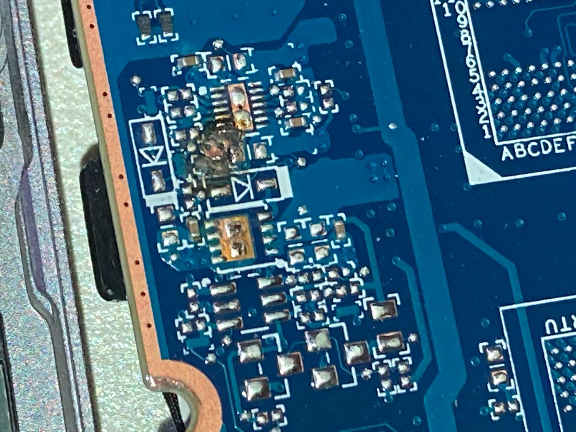 After this, the laptop has been charged via the usb-c port and two other unidentified components are blown.