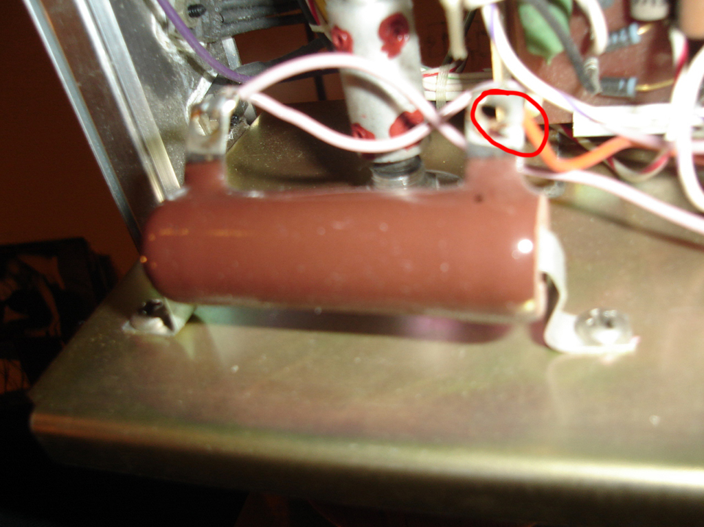 The positive side of the cap has three orange wires. One goes to a bleeder
