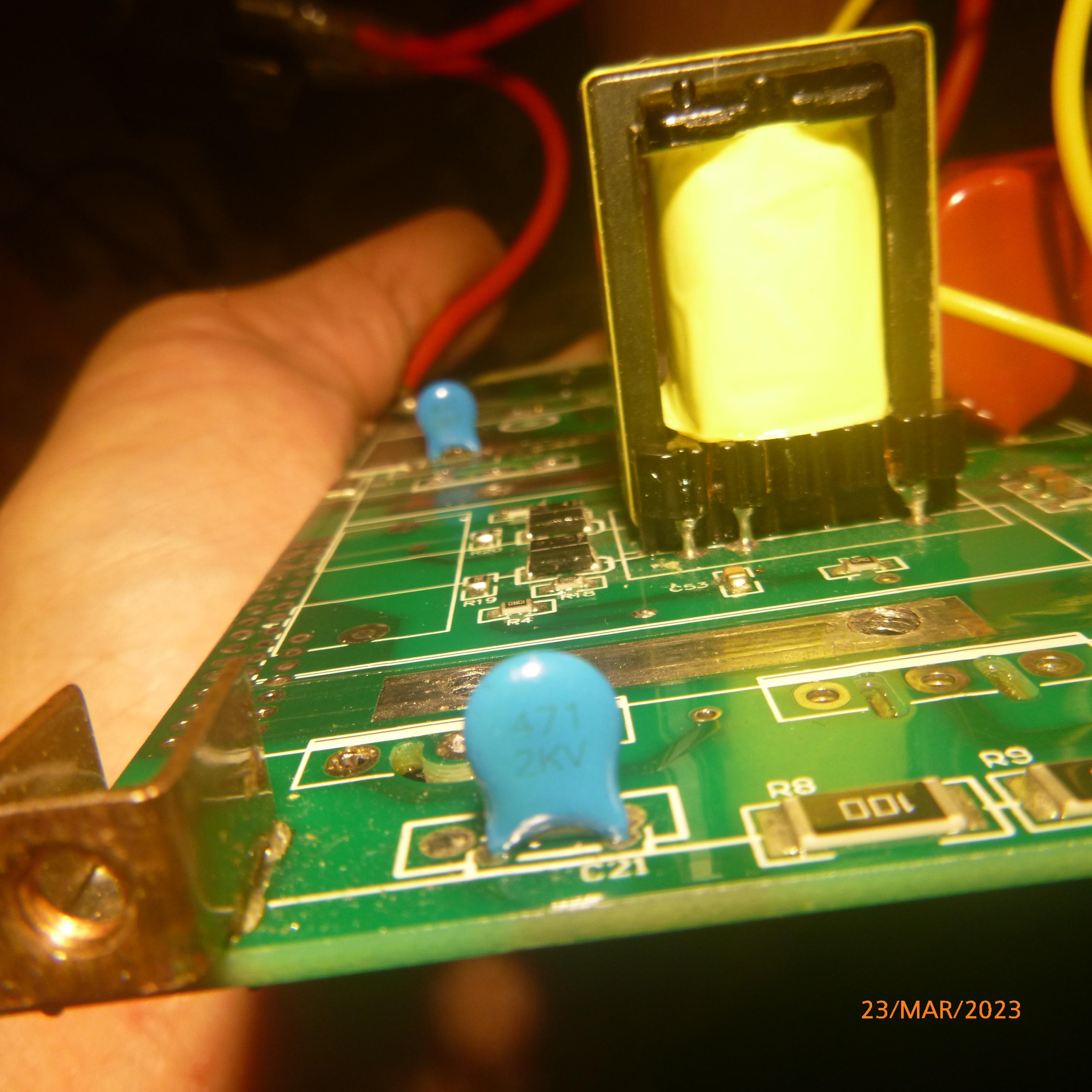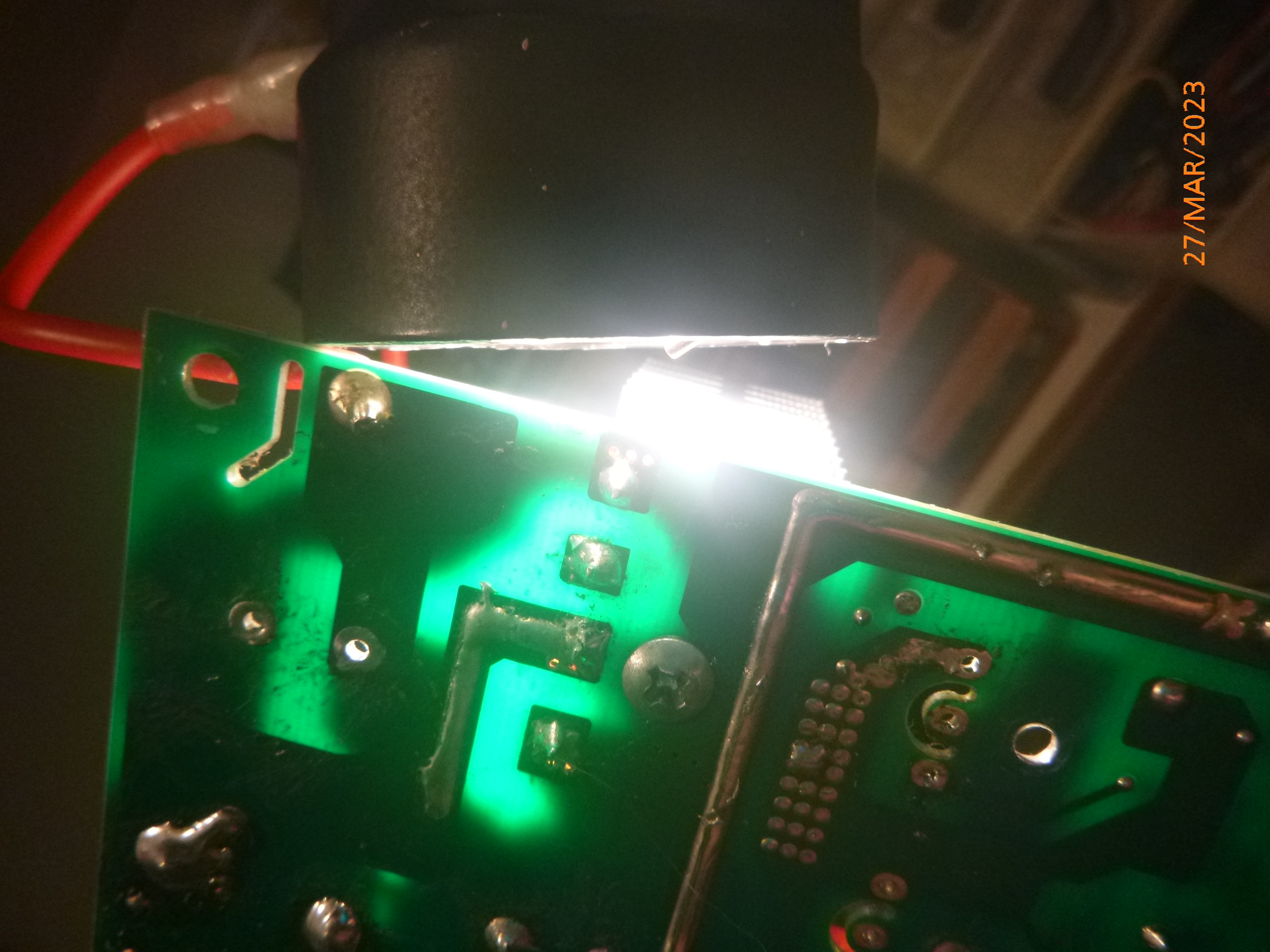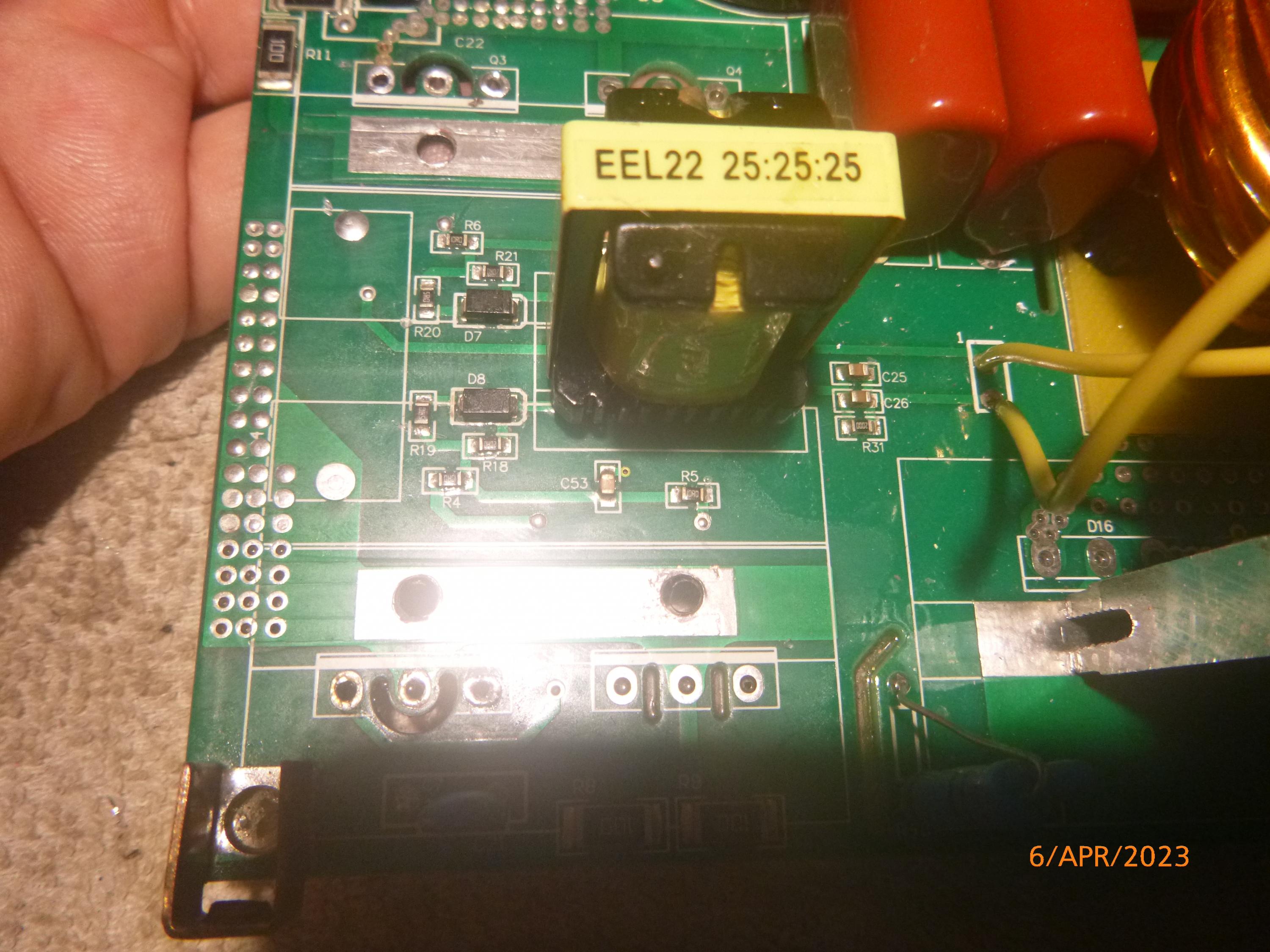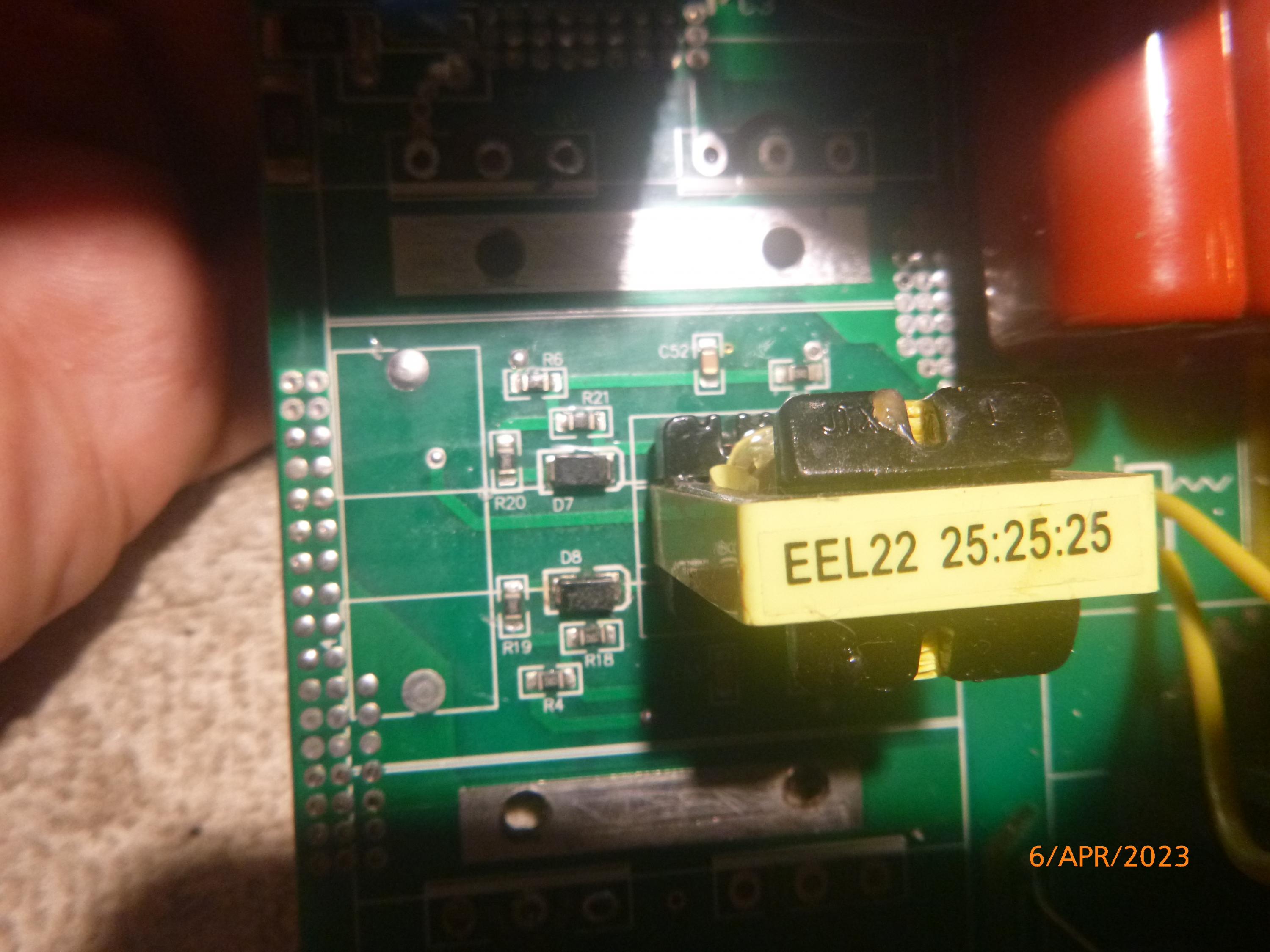 Normally, the lack of arc symptoms could be simply a dirty or poor connection on the main leads, and there was actually some play in the two large bars which connect the pcb to the hefty 16mm cable terinals on the front panel, although tightening made no difference.