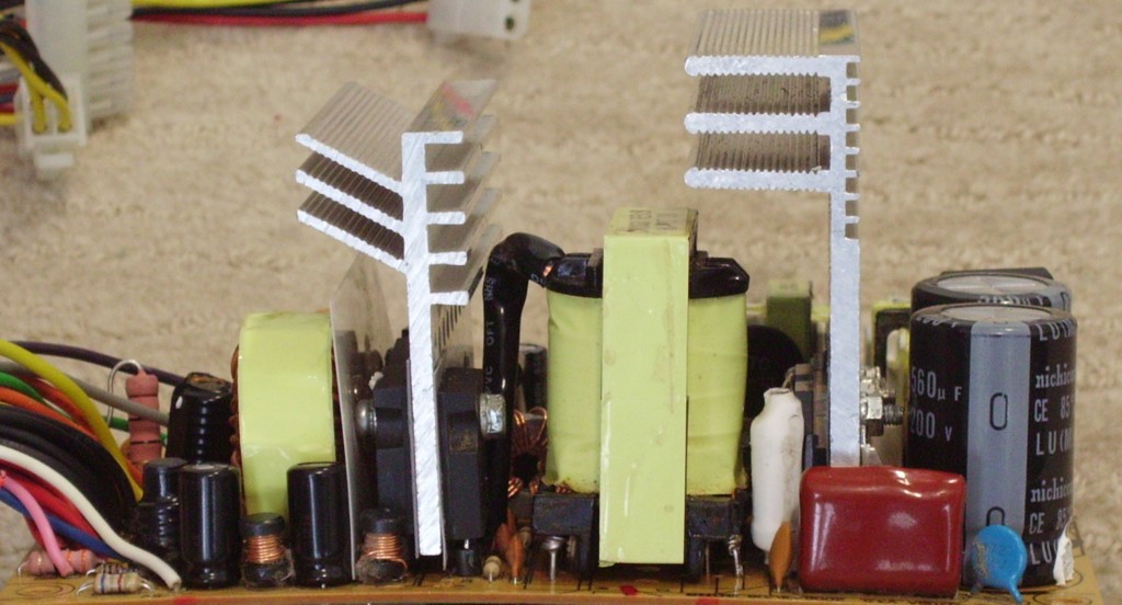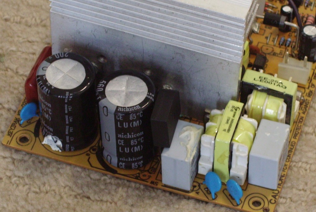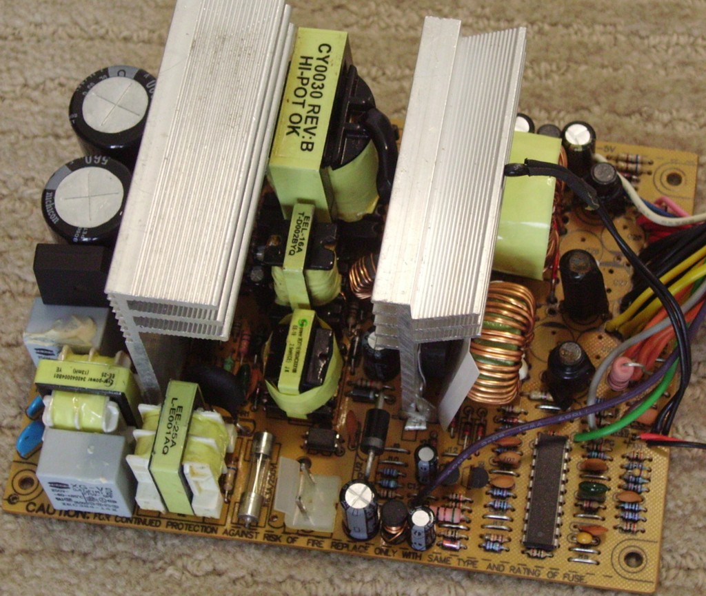 I pulled this PSU out of a customer's machine. It wouldn't POST with this PSU, but worked fine with another. I decided to rebuild this PSU and turn it from a gutless wonder into a PC P&C (OK, maybe not quite that good). Here's what it's getting (all parts except for secondary caps scavenged from other PSUs) :