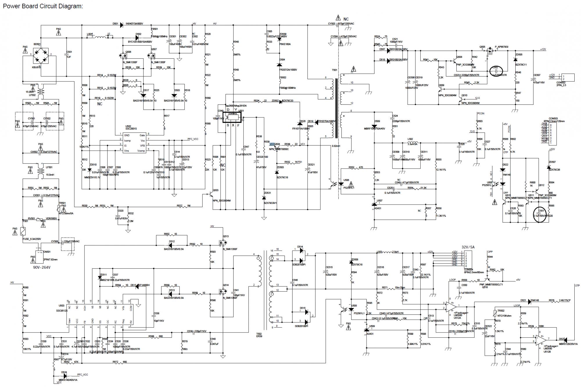 I order to pull the power supply out of standby, I connected an external +5V supply to the 'PCON' pin. This causes the +12 and +32V outputs to become active.