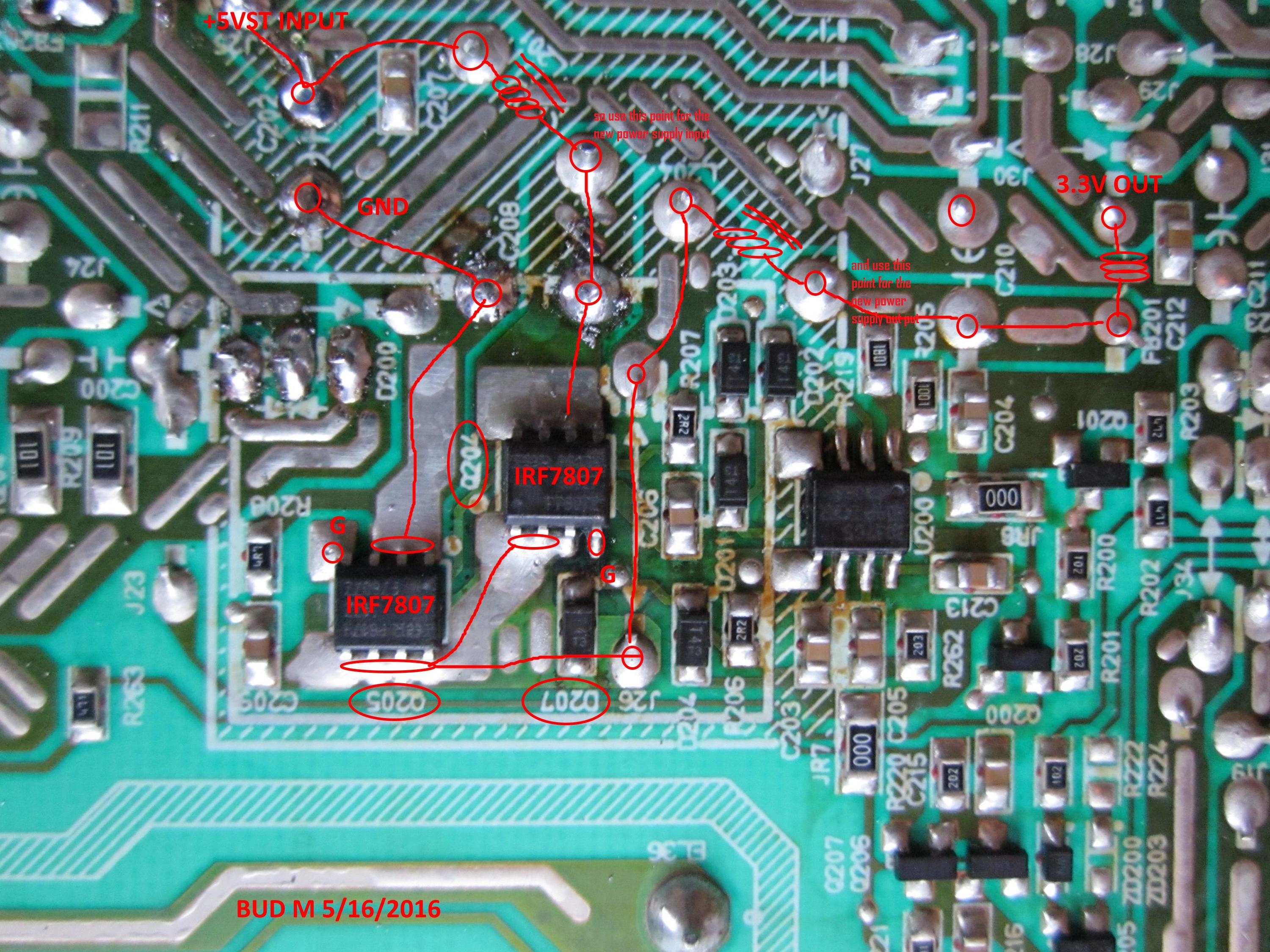 Then there is some logic signal going on with SMD transistors Q200 and Q201 and SMD resistors R200 and R201.