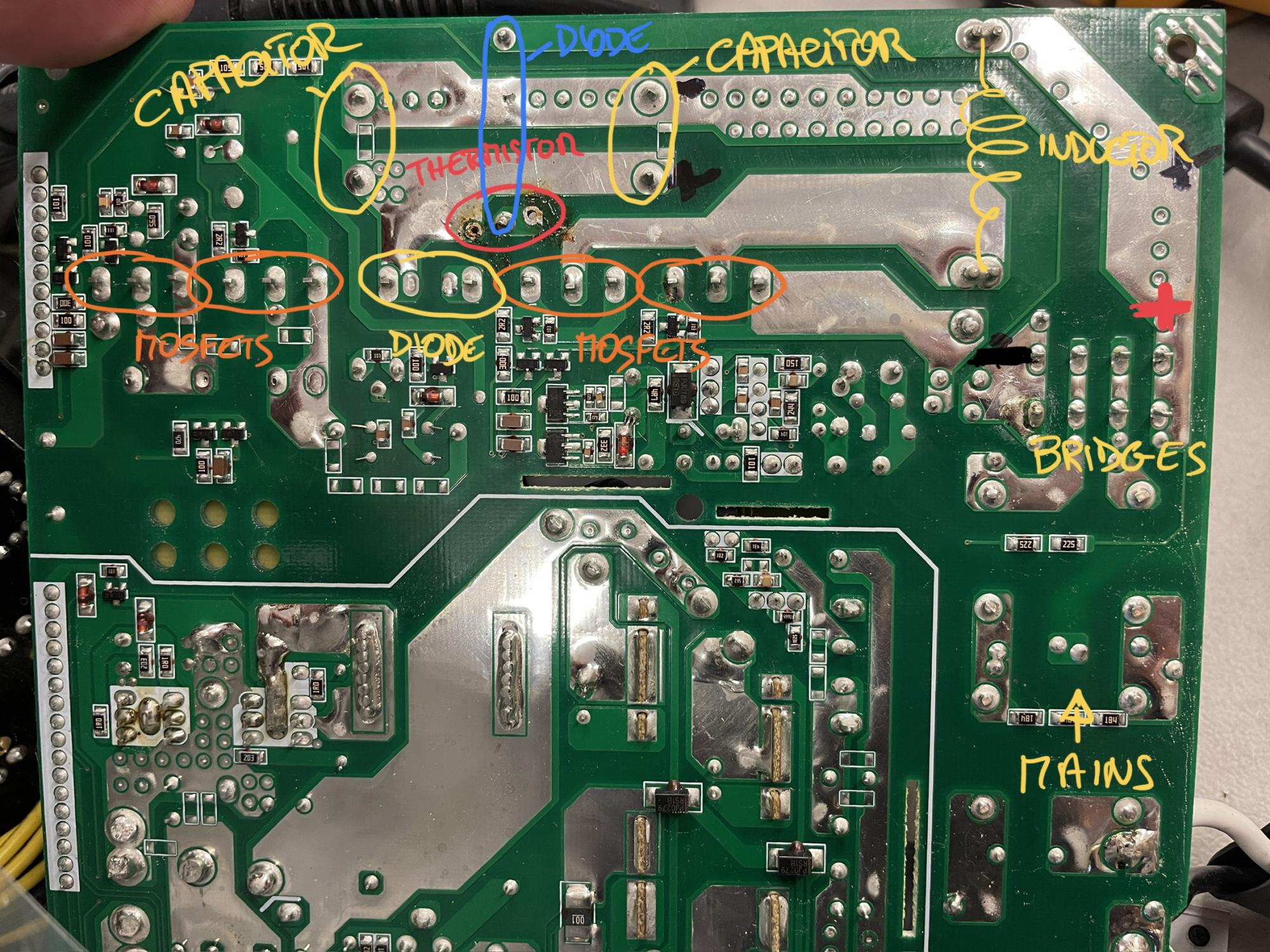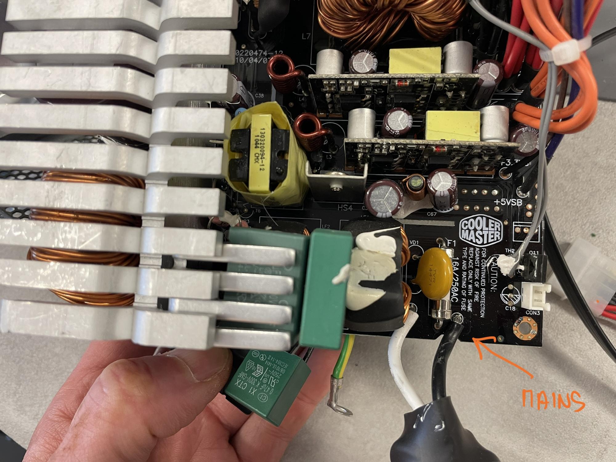 So are you suggesting that the whole current drawn by the PSU flows through that little component? And the thermistor is constantly at 60+ degrees whenever the PSU is being used?