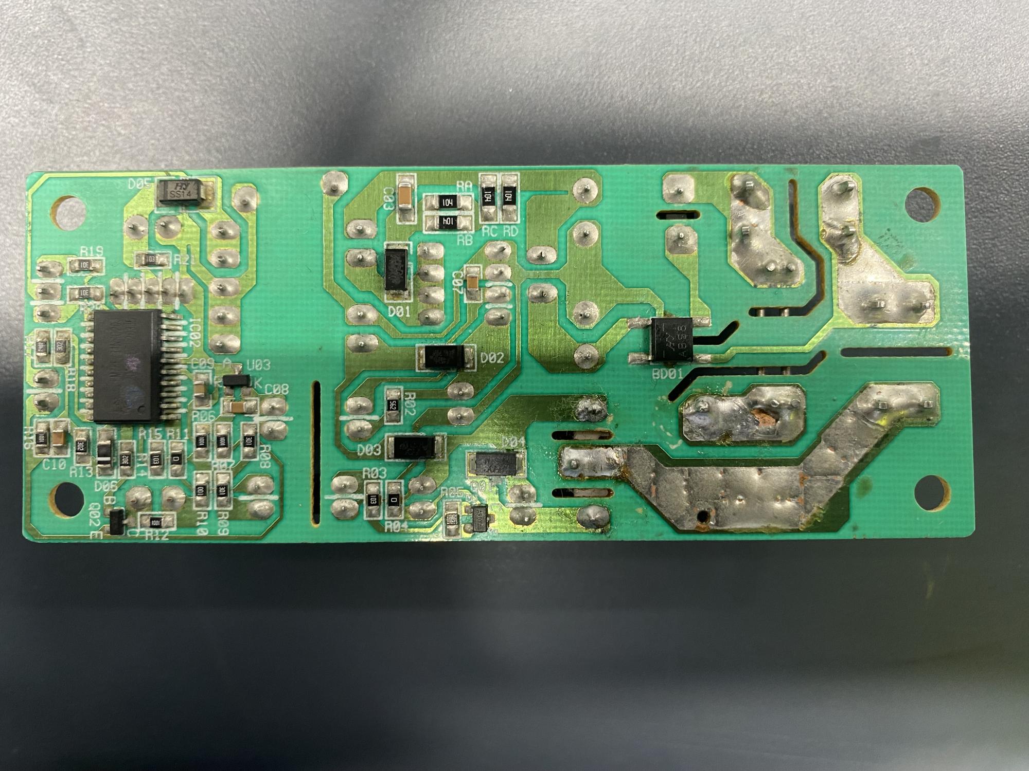 Well thats what I thought too until I started measuring the voltage on the main transformer of the charger and was getting nothing. After that I checked the relay on this board and its only getting 5~6V ; probably half of what it needs to activate and send the mains power to the main transformer.