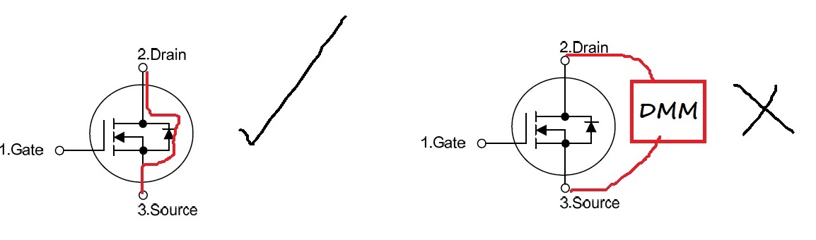 Is there any way I can check that there really is a voltage between source and drain, in circuit, with power on?