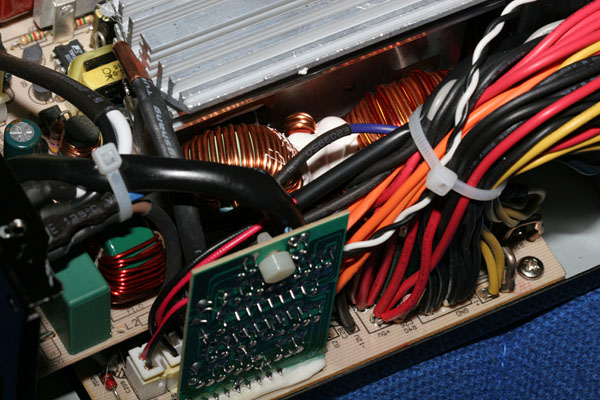The two 1200uF 200V caps seem like a decent size for this wattage, and the heatsinks aren't too bad for 480W. What are the ratings on the rectifiers? (My L&C supply I scrapped had undersized output rectifiers