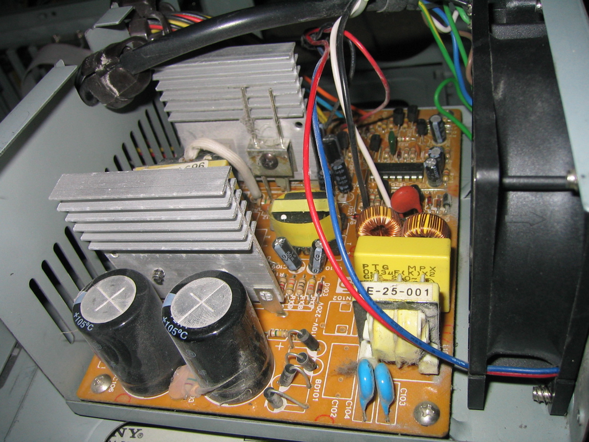 Pete and gonzo, in this case, one huge 400V cap stores the energy and the second brown cap proides the filtering? Would using two huge Blue caps be overkill? Also, why don't I see any metal-polymer (polyester, tantalum etc) caps in there? I know 400VDC caps of this nature exsist, but why are they not being used? Tantalum especially, to cut down harmonic noise?in electronic ckts I use, I've always used two lytics and two Tantalums to decouple harmonics in the power line to the IC's i.e supply to the VCC and -VEE.