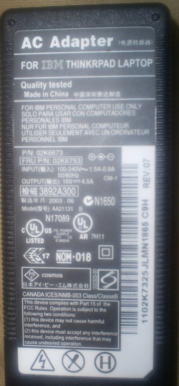 For the sake of anyone who tries to google or forum search for that adapter, I'd like to add these part numbers for the above "thinkrpad" AC adapter: