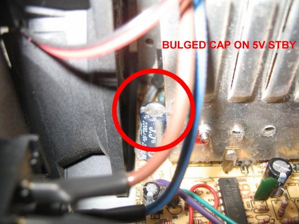 I have not seen badcaps on the MOBO, but since I have found this lovely forum, I have learned to lokk inside SMPS so I opened it and I saw a bulged cap on 5V STBY.