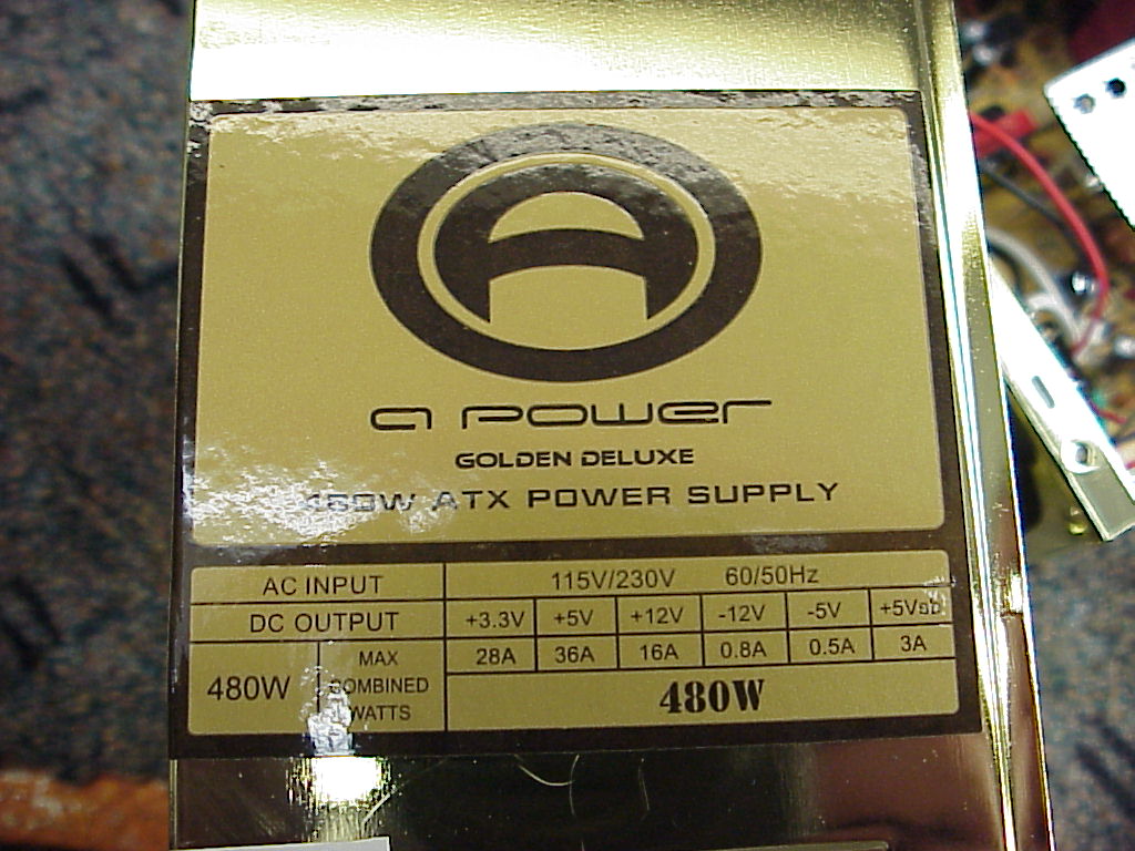 Yesterday I was browsing the hardware stuff in Value Village (sometimes you score good stuff), I saw a generic brand golden PSU, two 80mm fans one on top and one at rear. Ew, why one want a GOLD looking PSU? :P