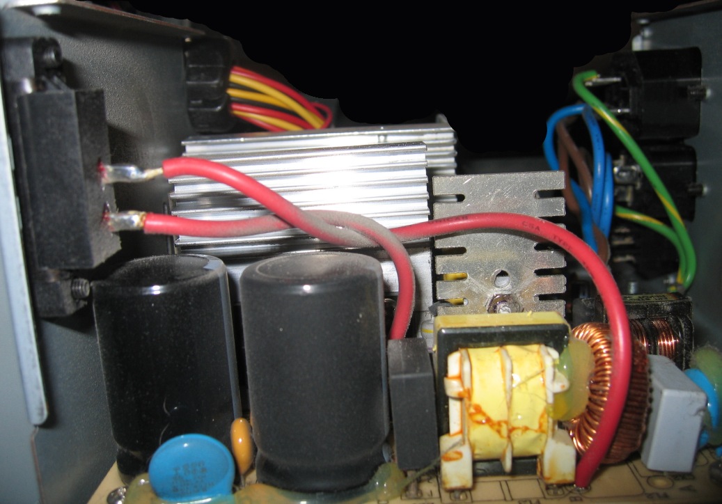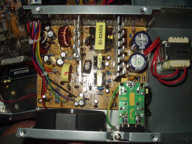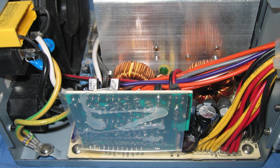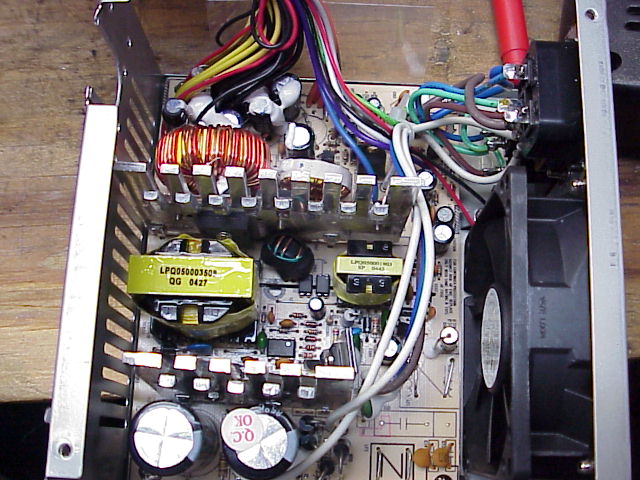 Note that on this PSU, the fan was affixed to the top cover and sucked air from the vents on the back, exhausting it into the PC.