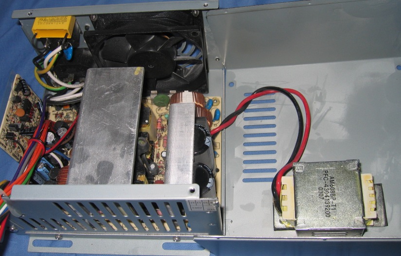 I find it odd that one of the transformers is fixed to the PSU cover rather than to the motherboard. The unit emitted a 'hissing' sound when turned on, which seemed to be coming from the transformer.