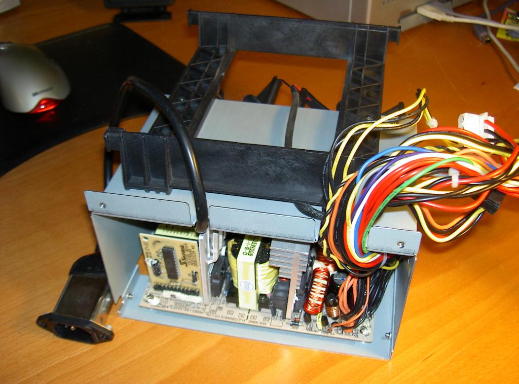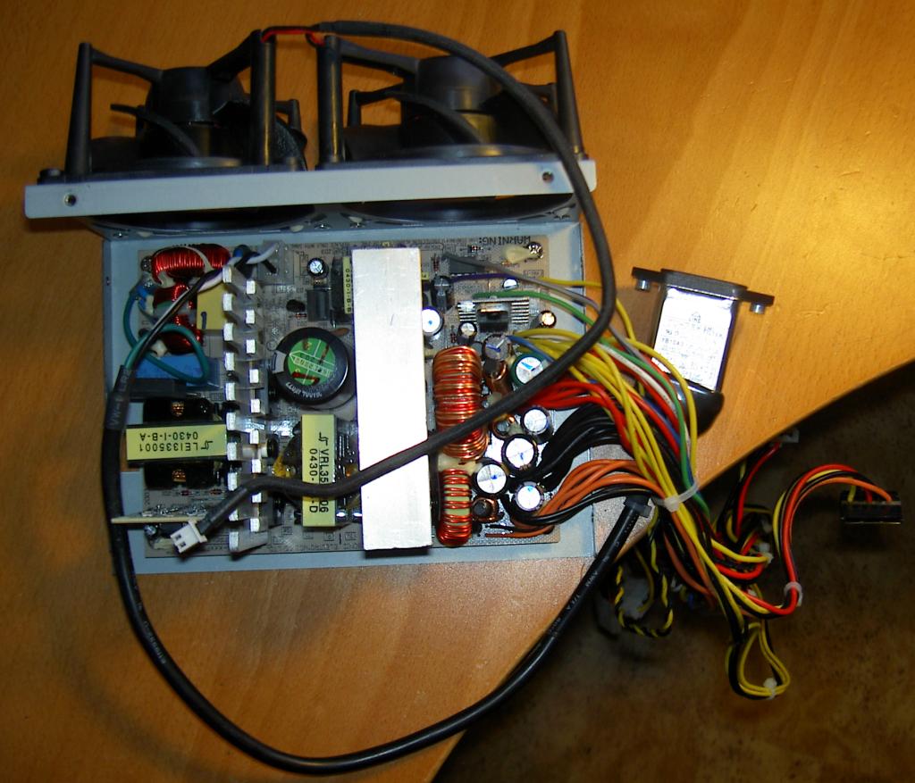 The PSU looks a bit strange since there is no bottom; it is provided by the T2 case itself...