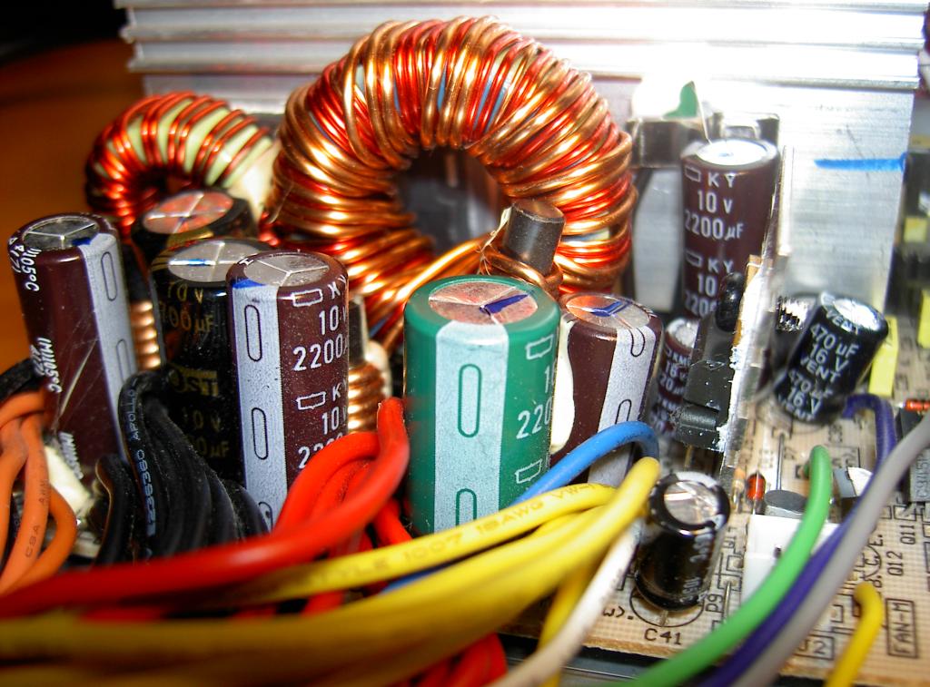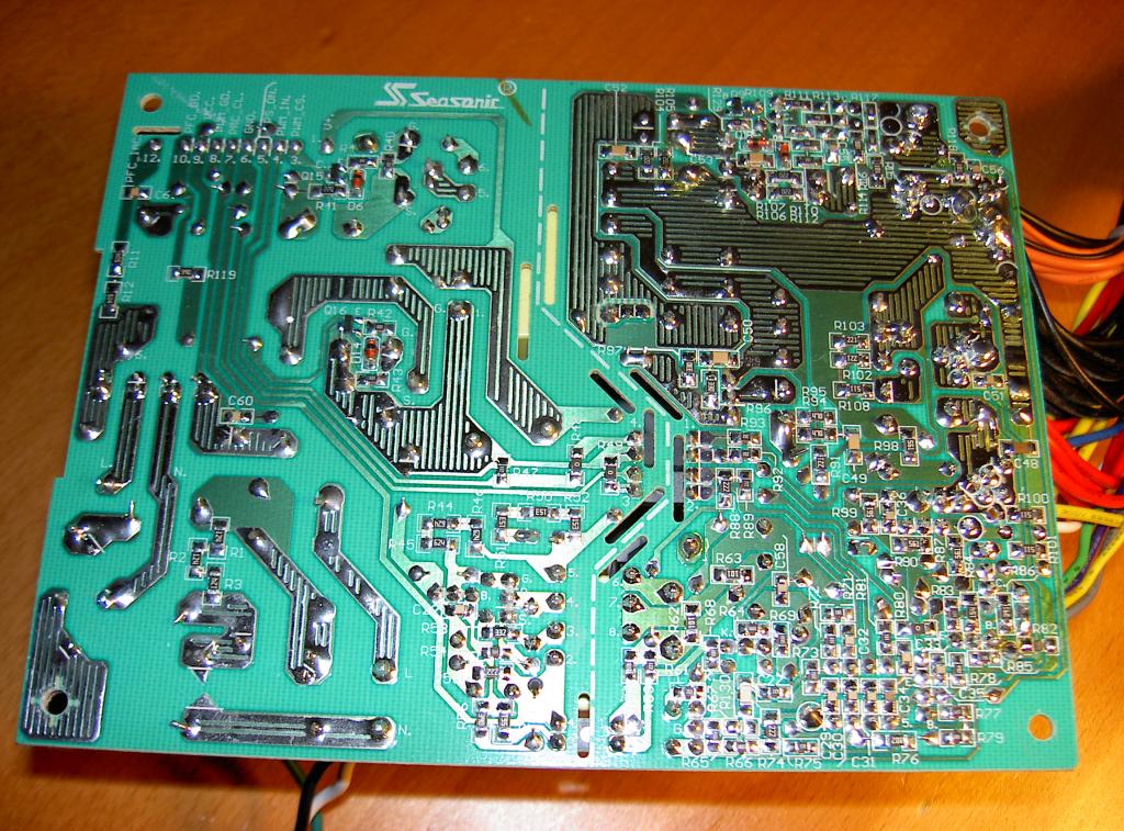 On the secondary side there is a real cocktail of capacitors... 6x United Chemi-con, 2x OST. 2x PCE-TUR and 1 Rubycon