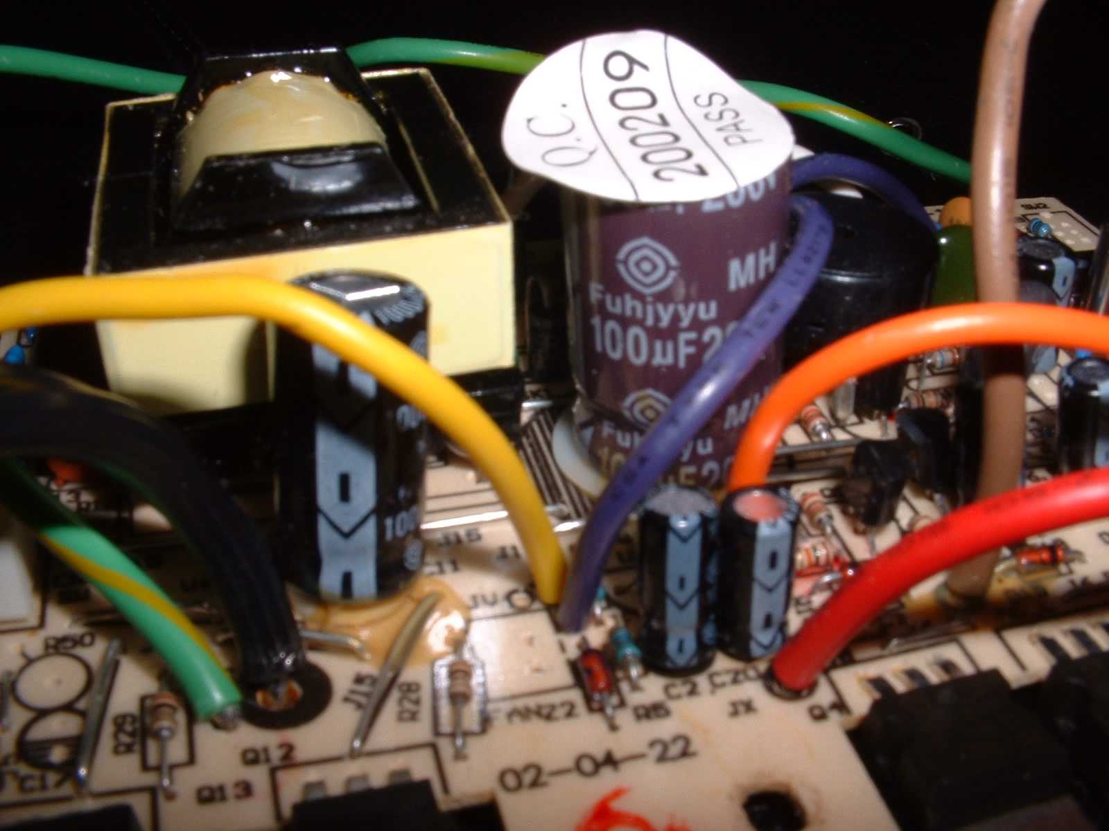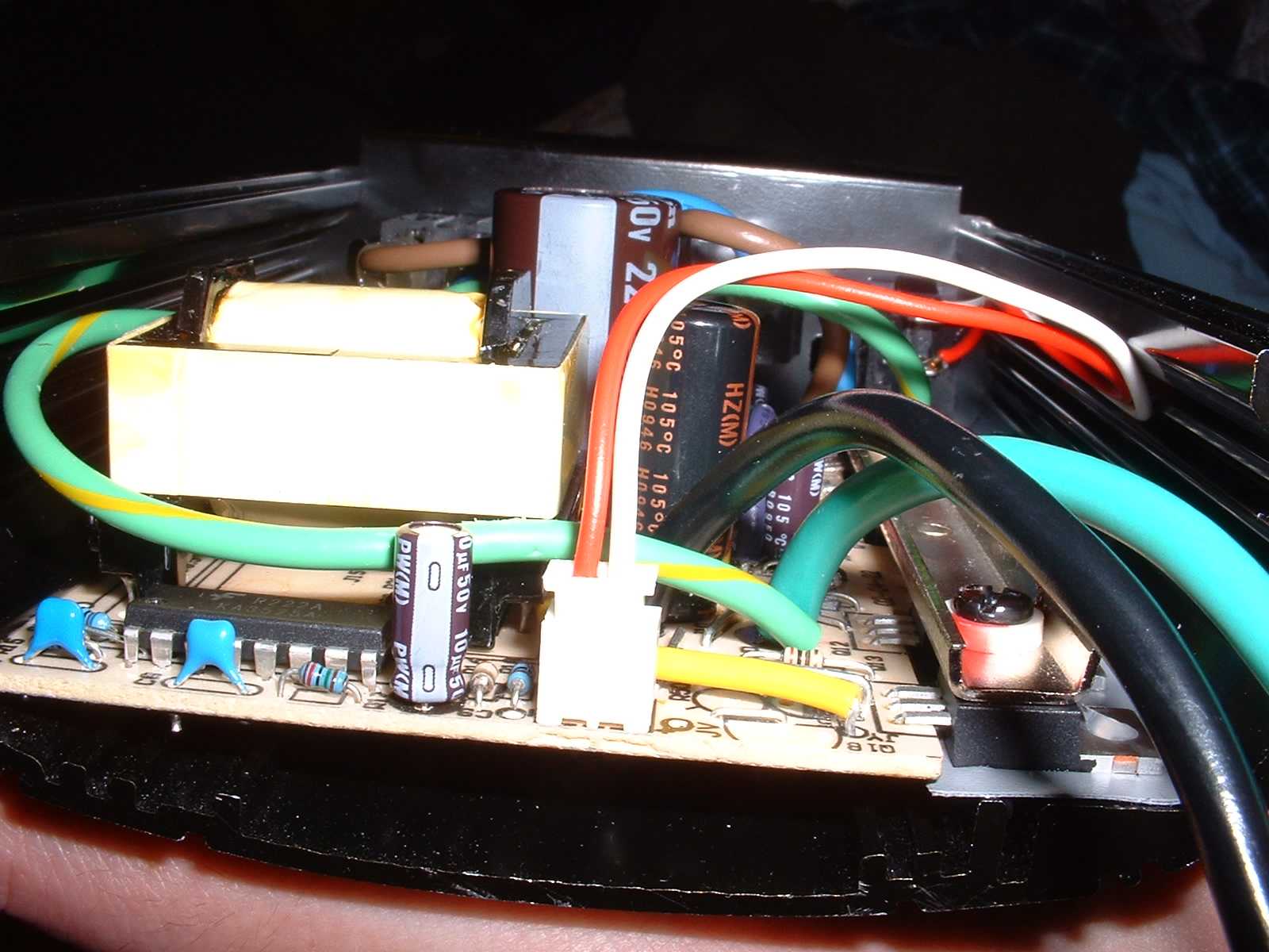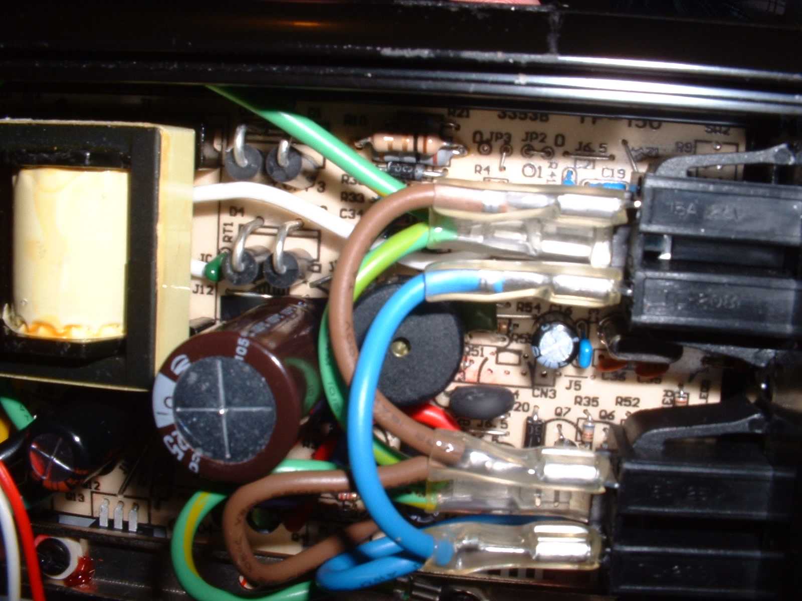 With the original parts, DC bus was around 162v without a load. Under a 140w load, it dropped to 156. Now I have 165v with or without a 150w load, and the unit runs MUCH cooler. It's now capable of 225 watts out, but only for brief periods- obviously the transformer won't take that continuously. The load in the pic is a 150w bulb and a small shaded pole fan.