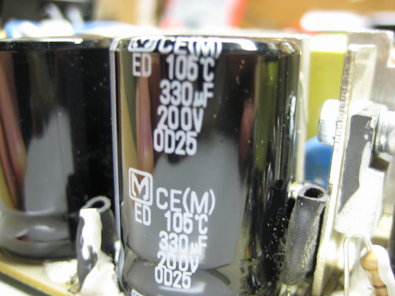 Panasonic CE: I used these "big cans" for the voltage doubler/PFC-type circuit on the input. These are rated for 200V and 330uF. I chose these over UCC KMH because of their higher ripple current rating.