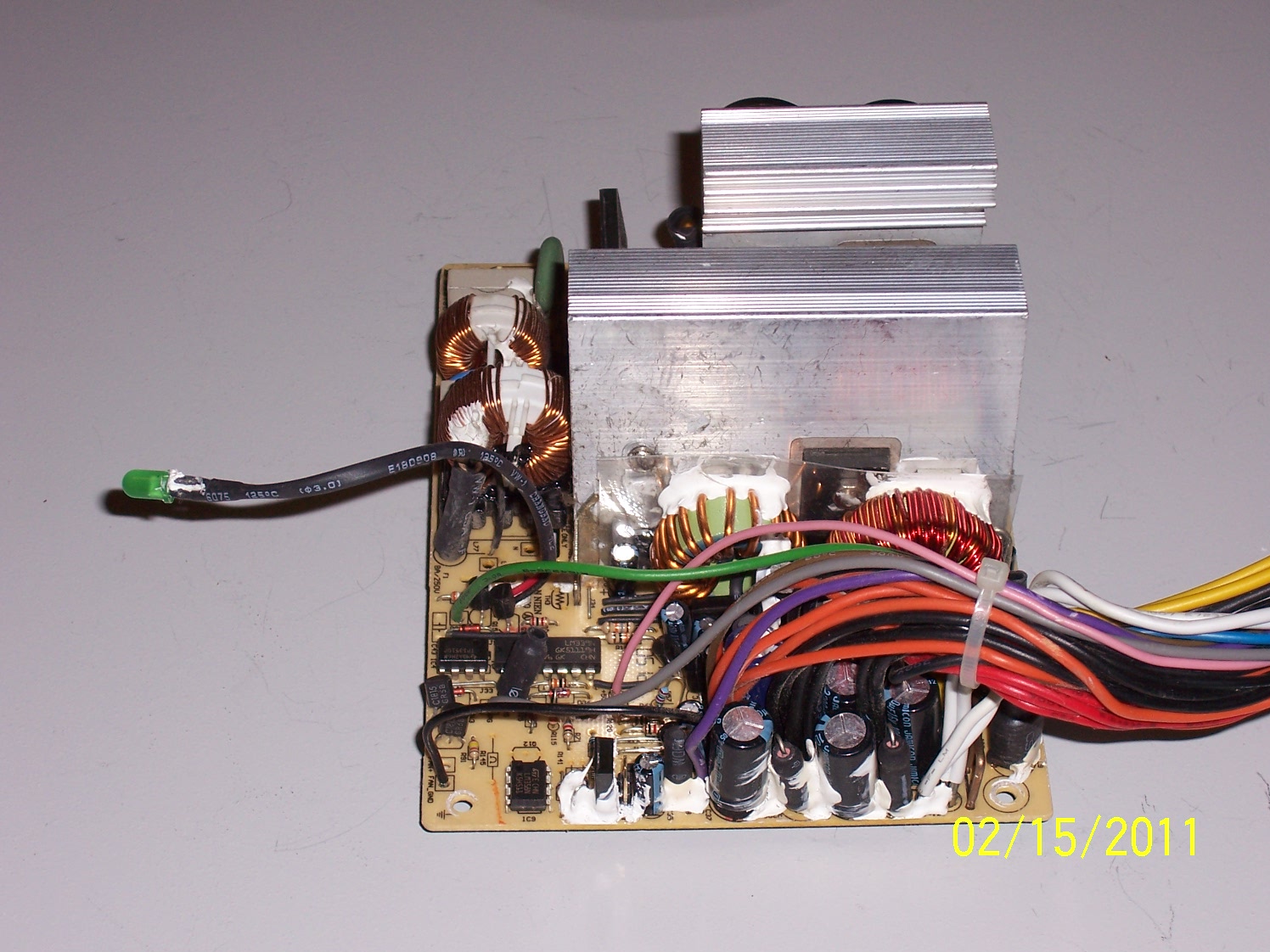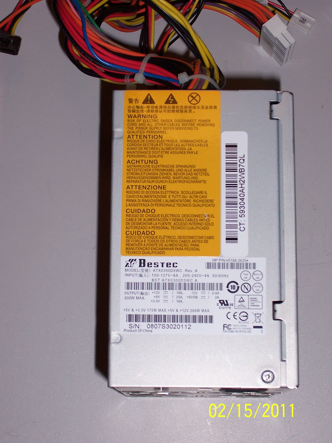 To begin, this is the Bestec ATX-300-12EB3. In general appearance it looks much like the Bestec ATX-250 12Z, but is oriented toward the 12 volt processors. It has two 12 volt outputs each rated for 18 amps, and a 5 volt output rated for 25 amps. It uses the same 5vsb chip as the 12Z, the A6351 chip, therefore preventing the 5vsb overvoltage problem in the early 12E model. It also has four optoisolators, one of which is the crowbar circuit for added protection. When something causes the power supply to shut down, the crowbar circuit prevents you from turning the computer off then back on. You have to unplug it from the wall to release the crowbar. This prevents people from thinking the problem went away by using a simple restart.