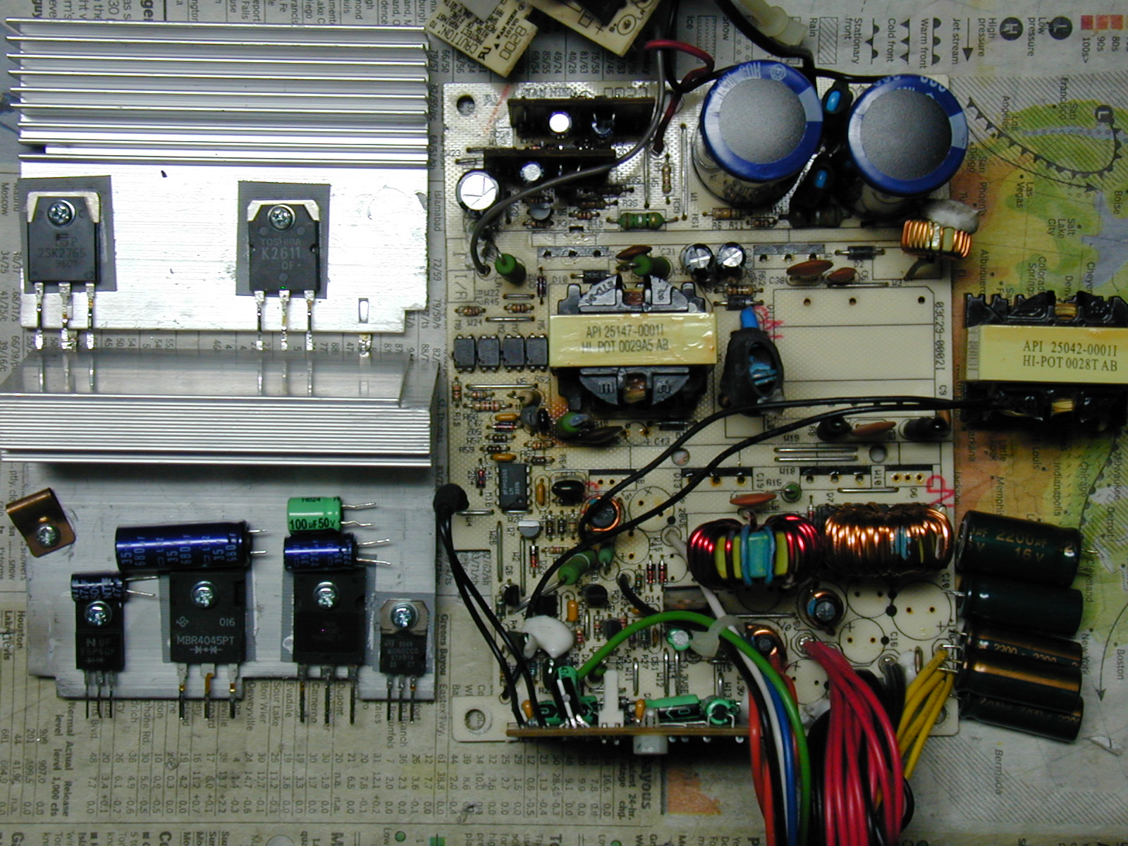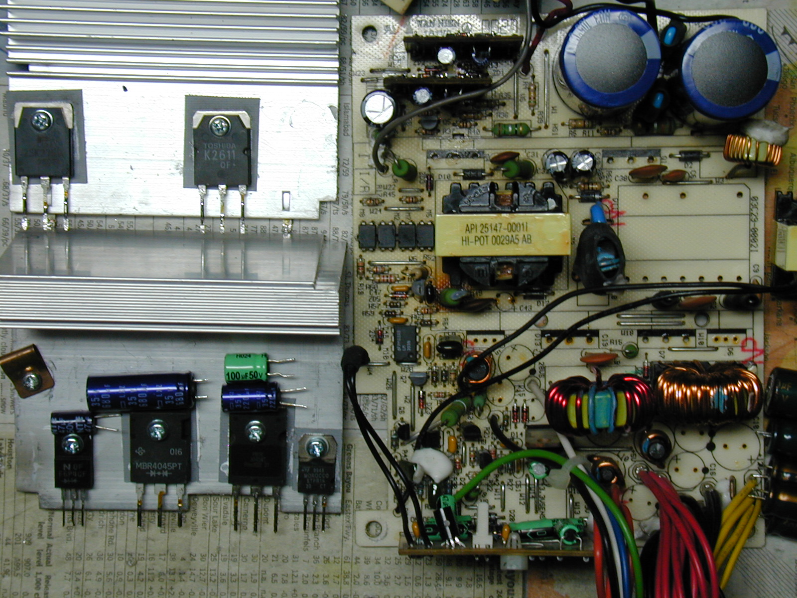 The two caps are new Nichicon HE. The other one is a new NTE. (I know. I know.)