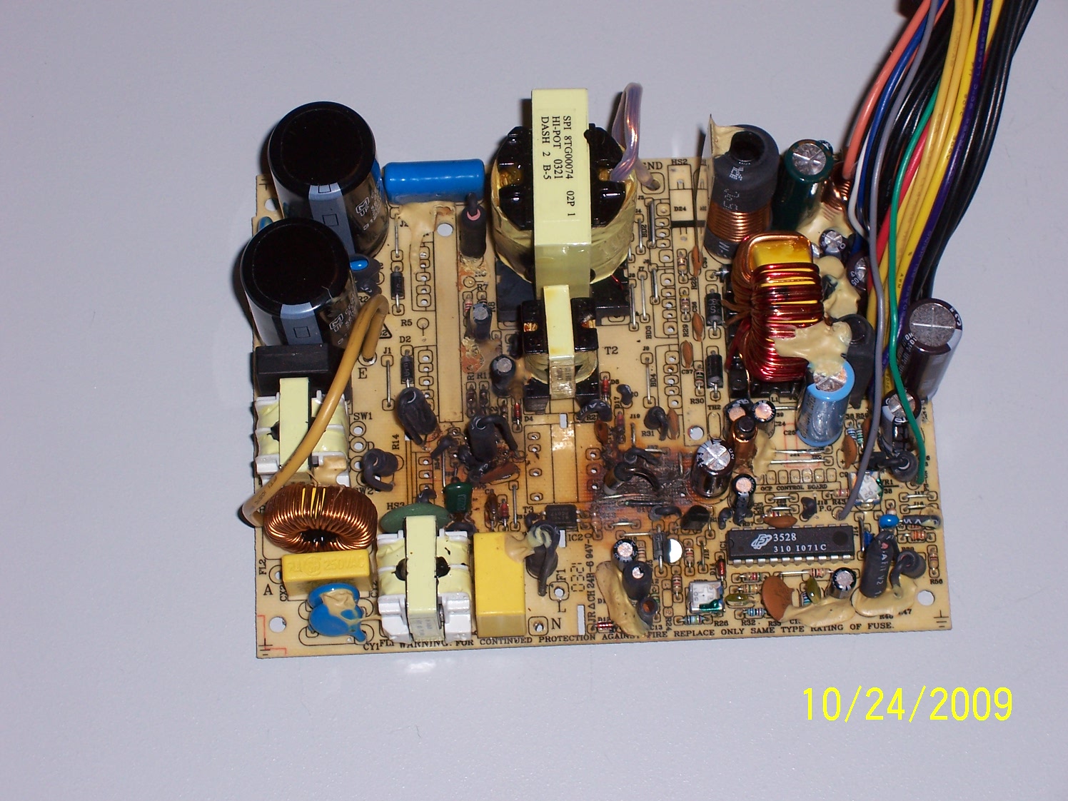 Here is a picture of a Fortron power supply that had the zener diode and failed. The heat sinks and 5vsb transformer have been removed so that you can see how extensive the burn damage is to the pc board. The motherboard may have been saved but the power supply is not very fixable because the burn damage goes all the way thru the pc board. This board went to the junk pile!