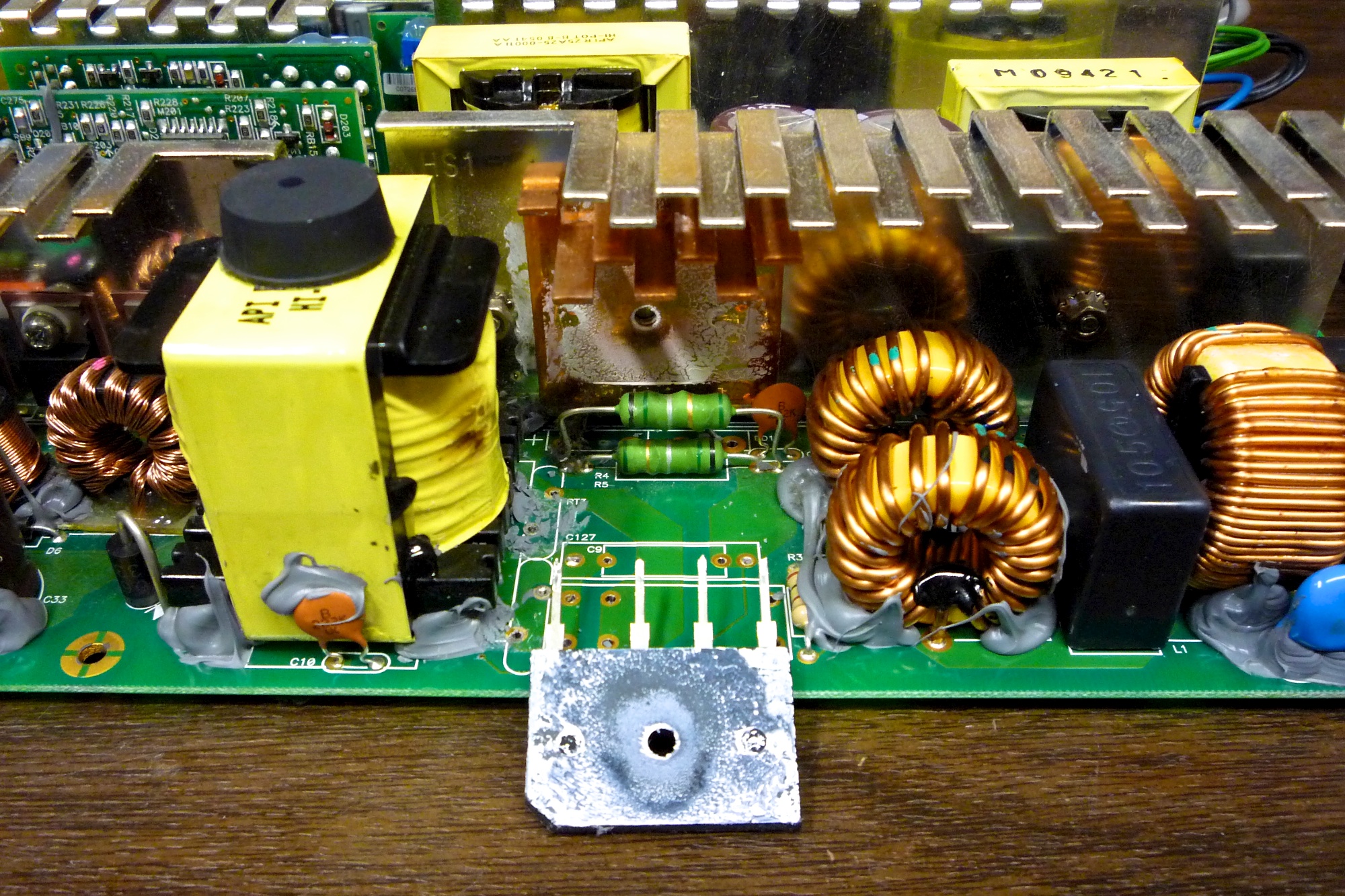 Bad news is the PSU is totally dead, and after taking apart just about every component in the thing to get the PSU out