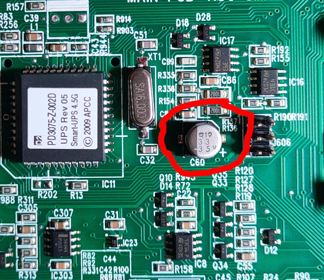 Main PCB is clean, no bulged caps, but as I was able to research, some small caps always fail on the APCs.