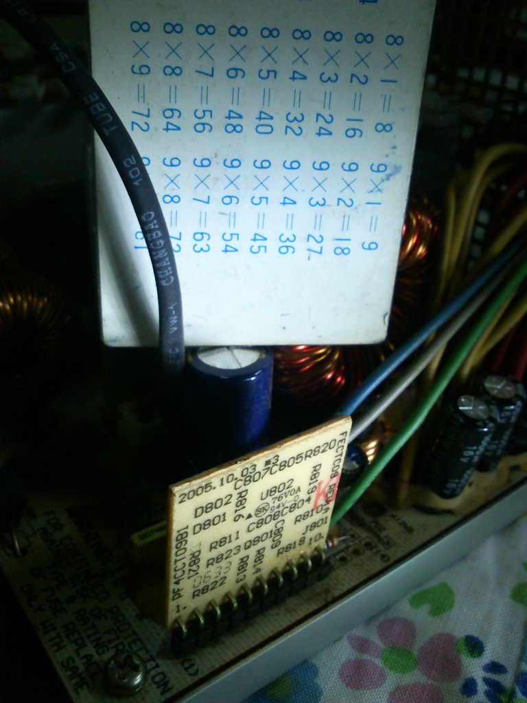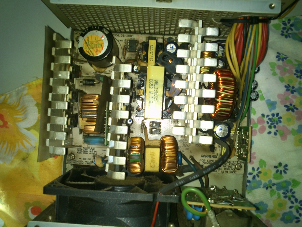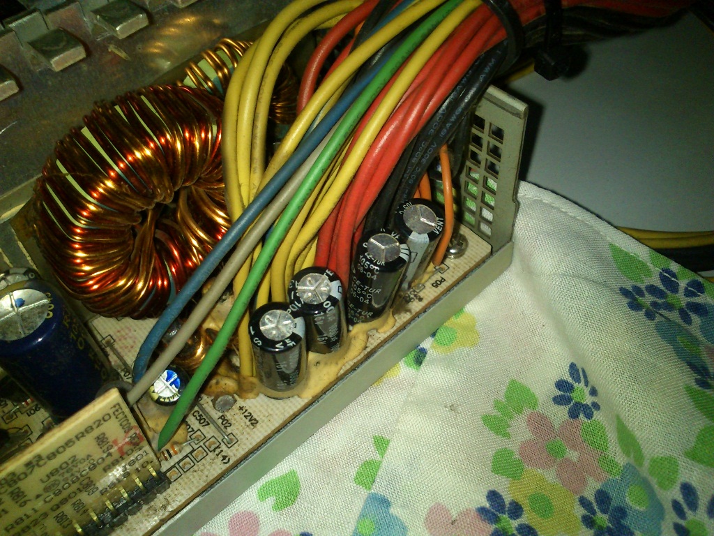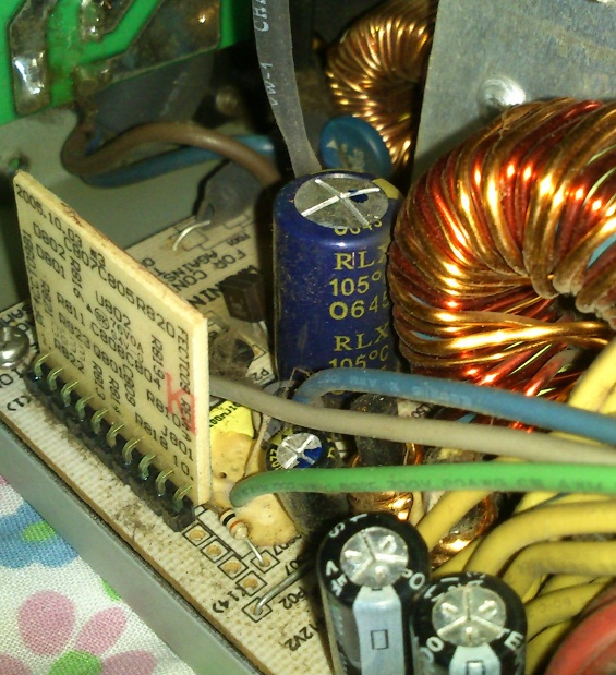 Since the warranty for the Earthwatts has apparently expired (purchased April 07), I decided to open up the PSU and check for bad caps. Lo and behold, a bulging RLX staring at me.