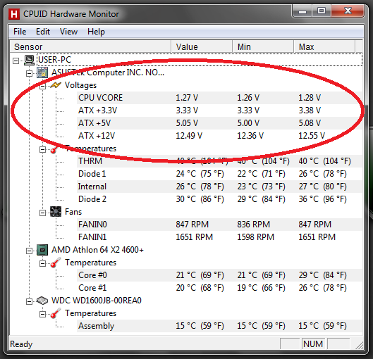 I hope this recap has improved my Antec PSU, which is currently running my Athlon 64 X2 4600+ PC in anticipation of my coming GeForce 9600GT graphics card for it. So far it is running well with stable voltages, as reported by the motherboard with CPUID Hardware Monitor in Windows 7.