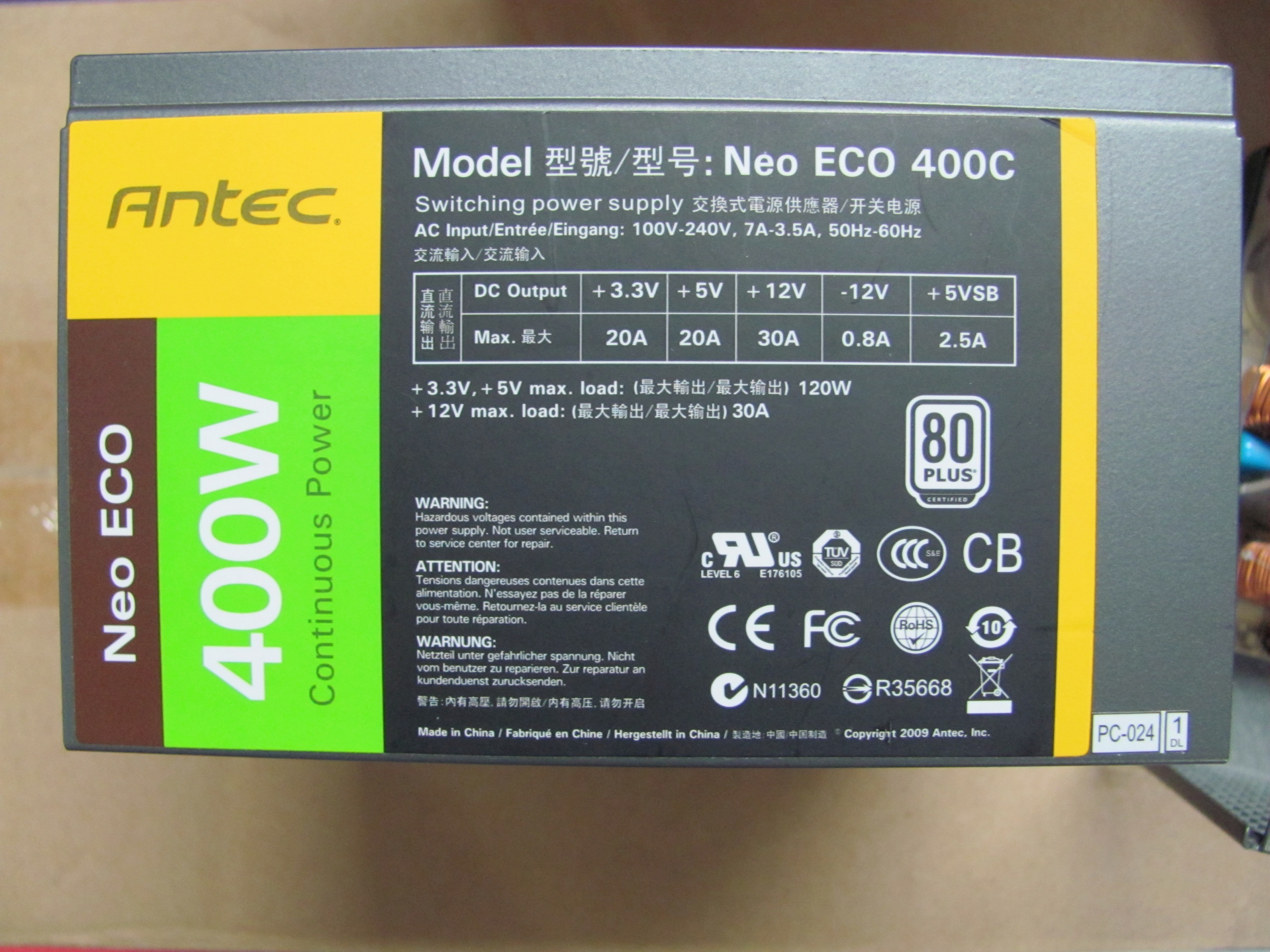 Two pictures of my Antec Neo ECO 400C power supply.