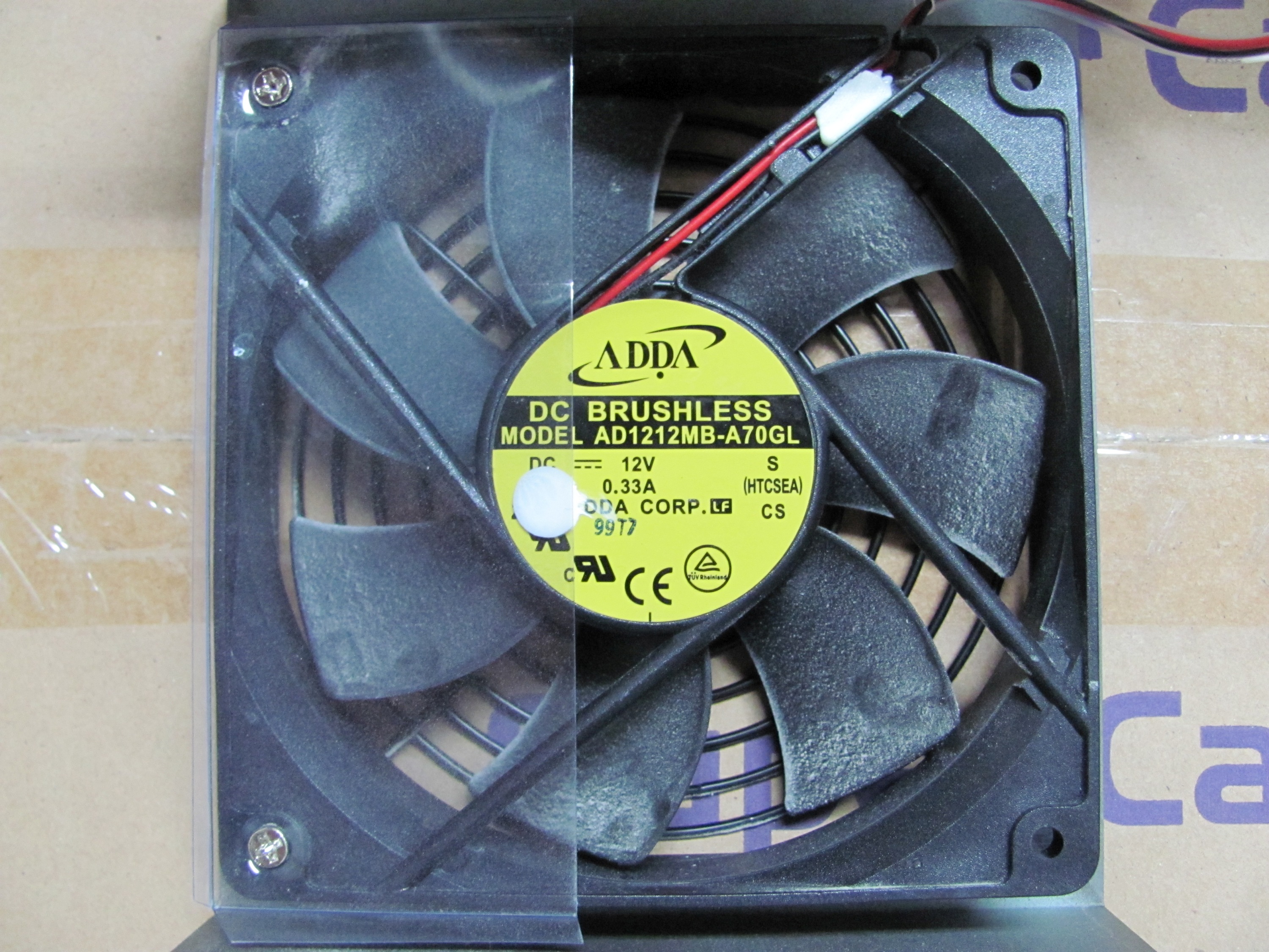 A picture of the top ADDA AD1212MB-A70GL 12cm ball-bearing fan of this PSU.