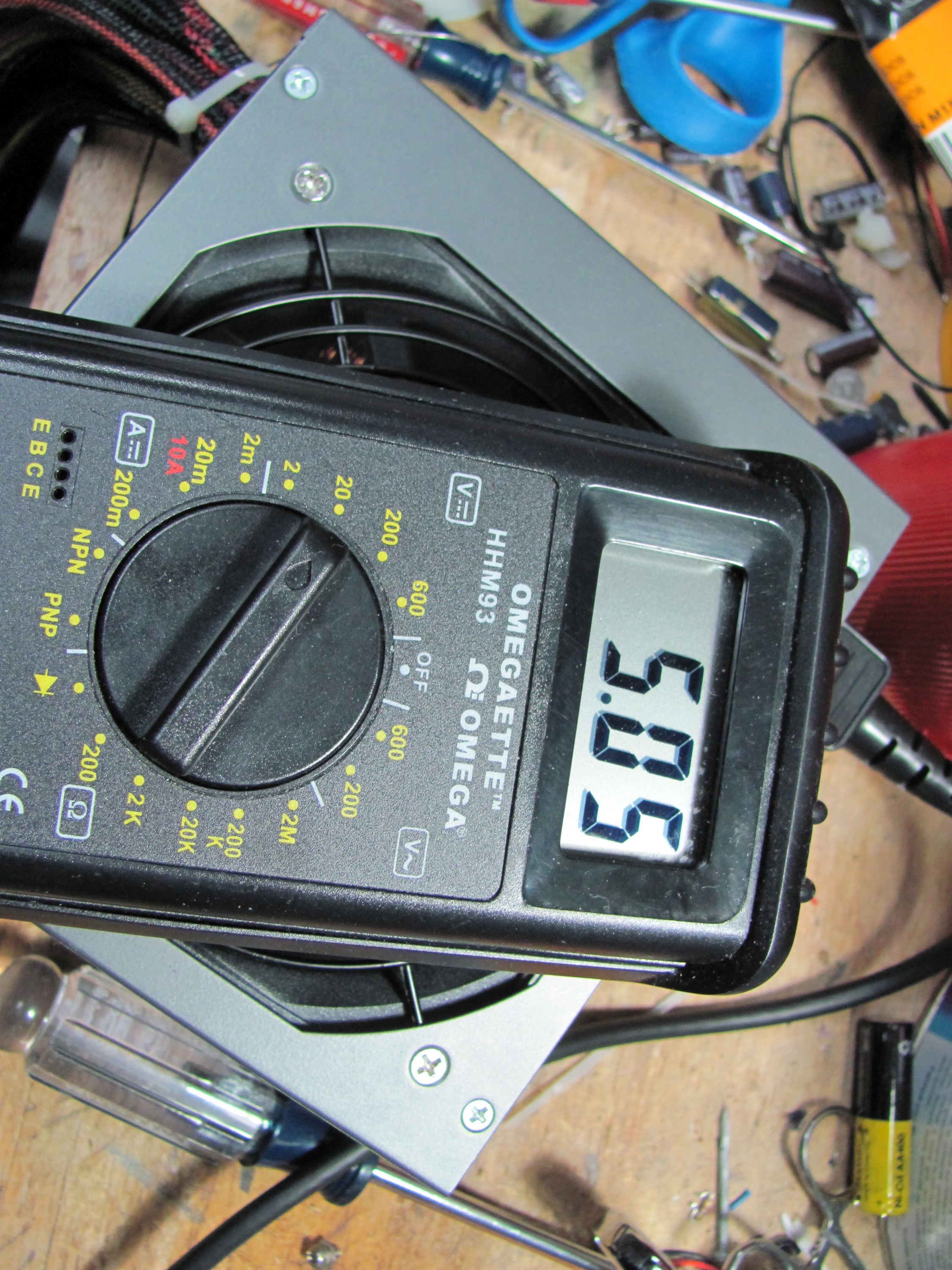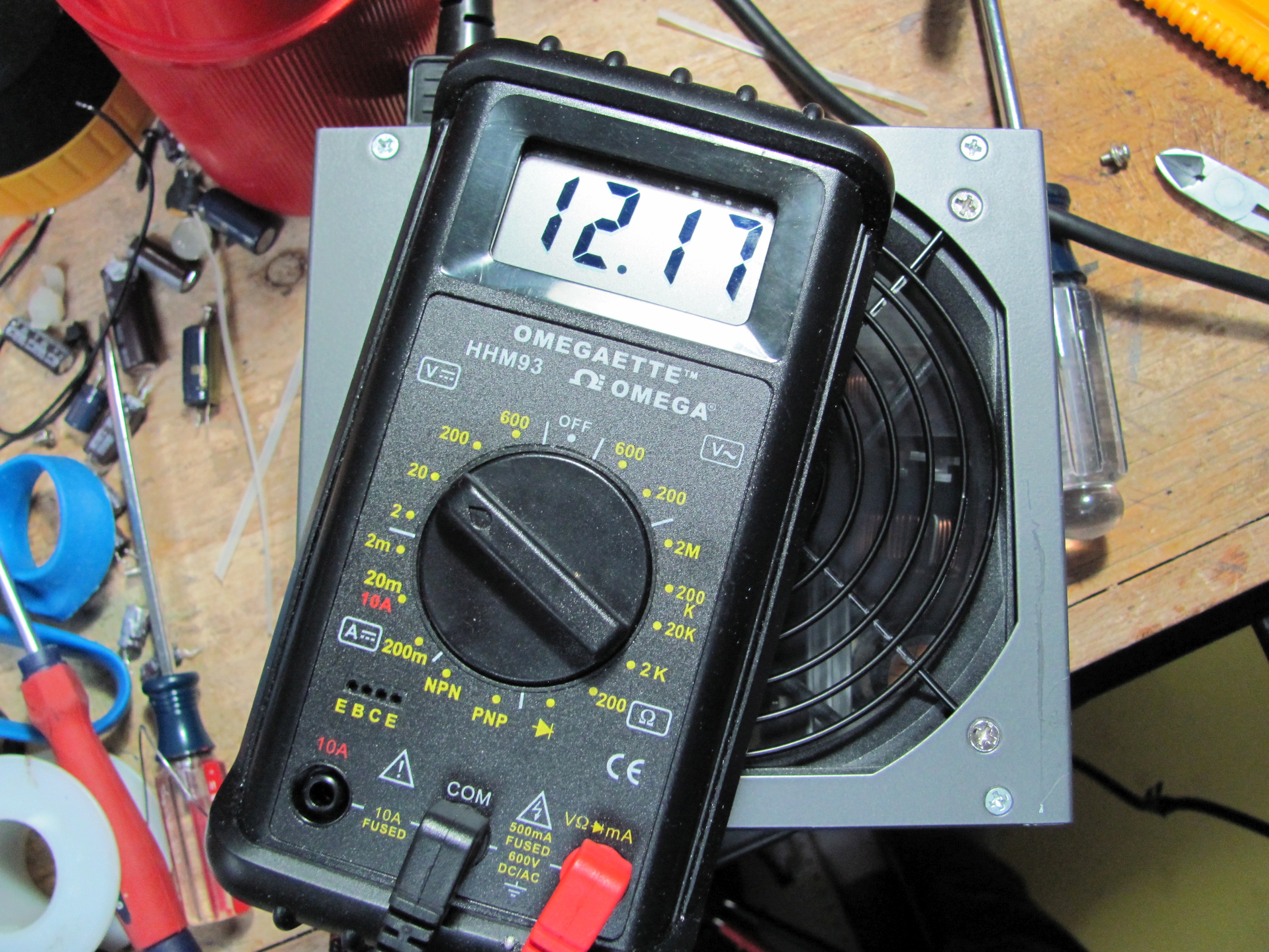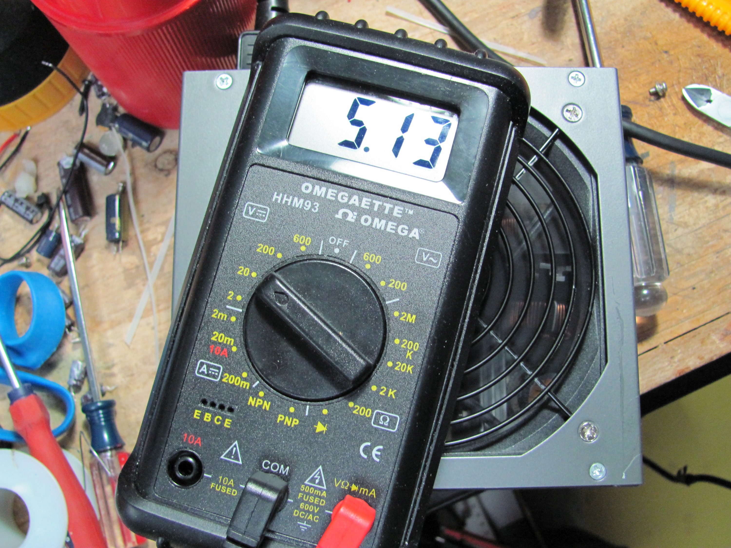 Pictures of the PSU voltages from my multimeter when running a small load from Vantec Tornado 92mm fan (from the top is first the +12V, then +5V, then +3.3V, and then +5VSB)