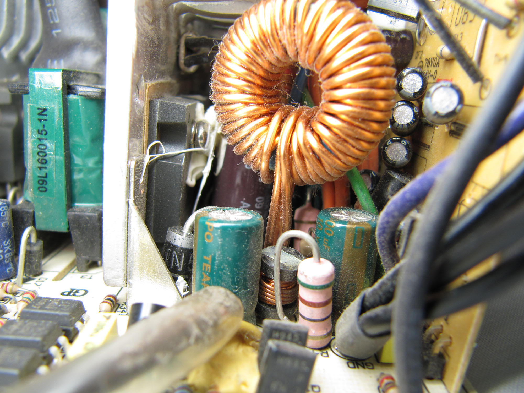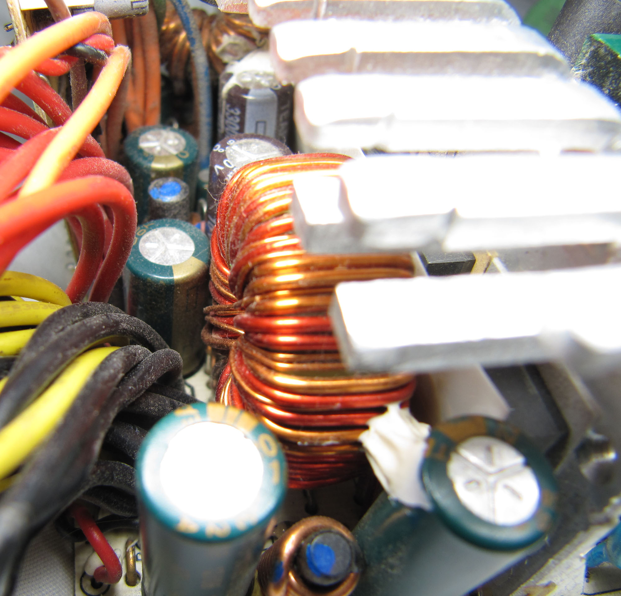 It doesn't boost voltage but the PFC coil can get rather hot and since this PSU (like most CWTs) has the coil right next to the primary caps this adds additional stress. Of course the primary heatsink on the other side of the caps gets hot when the PSU is loaded and the airflow is somewhat restricted in this area which is somewhat narrow with relatively large objects on both sides that block airflow, the PFC coil being a solid object isn't exactly good for airflow.Comment