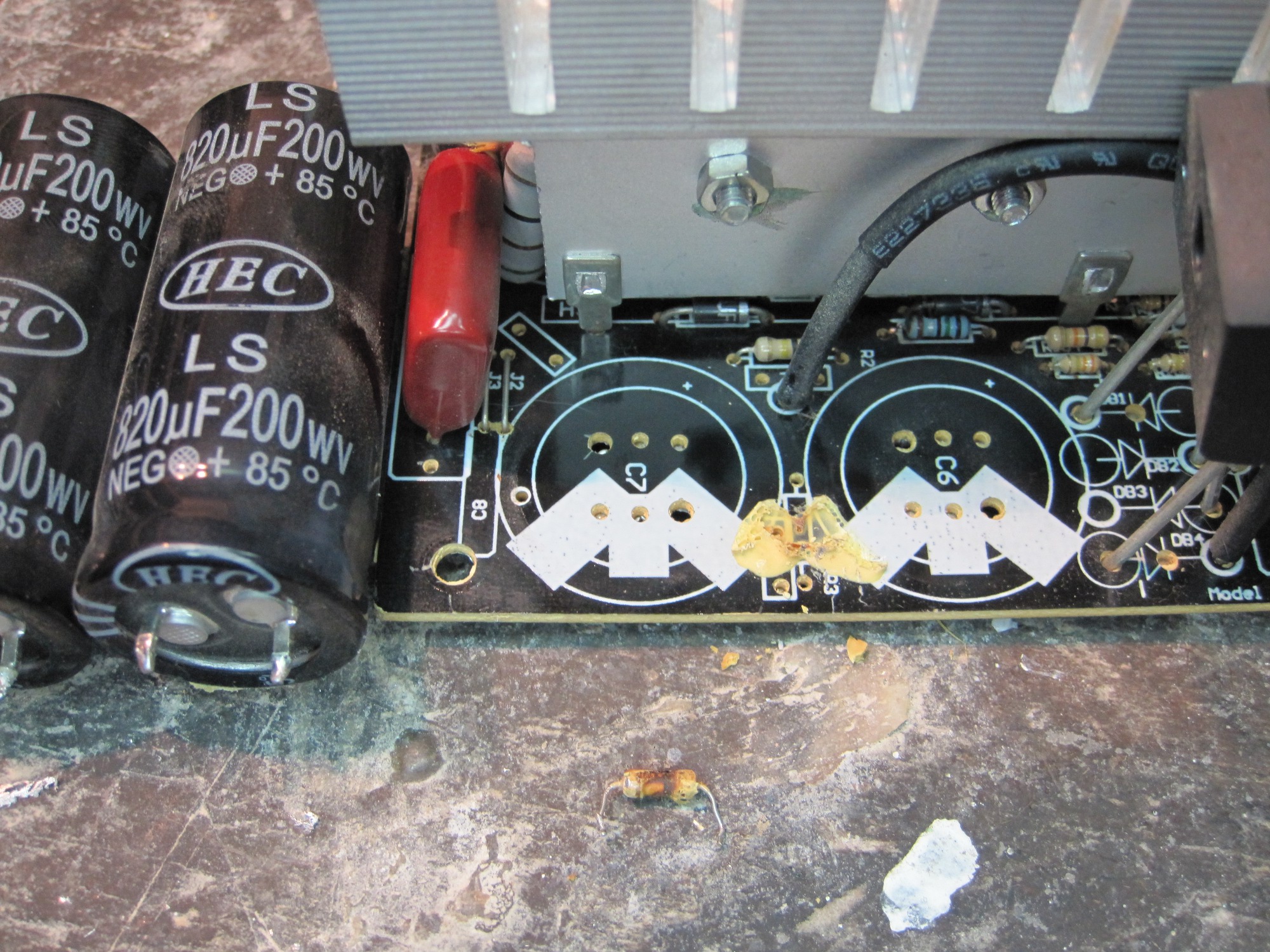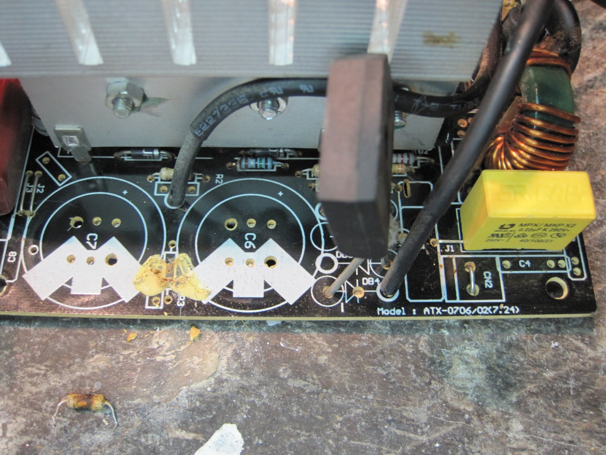 I have this Ultra ULT-LS6000P 600W ATX, blown primary input caps, and a Resistor that sits between them that I can't read the colors. Anyone have a schematic on this or have one they can ID the R3 resistor? Pictures show caps removed, the glue between the circles is the location for R3. And you can see the resistor sitting on the table next to it. Any help would be appreciated!