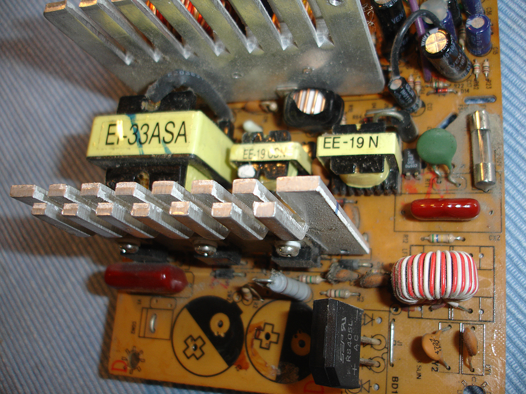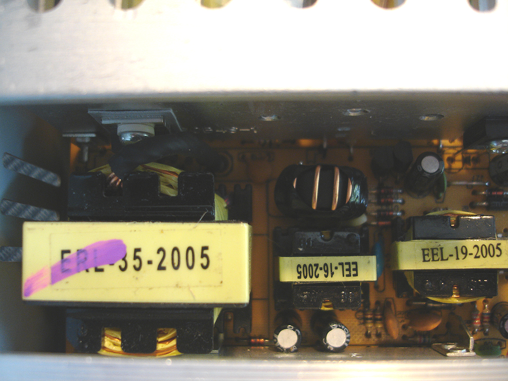 It uses the ERL-35 Transformer and the Primary Mosfets are large, labelled 13009. I suspect the real rating is less than 350 watt.