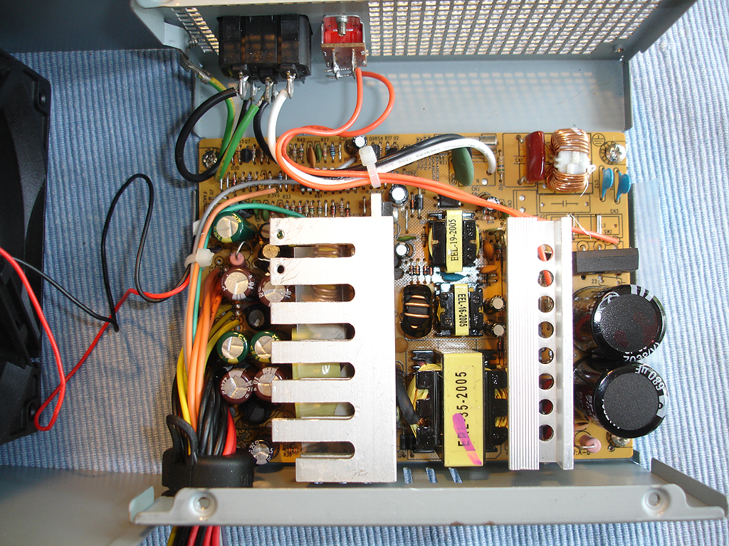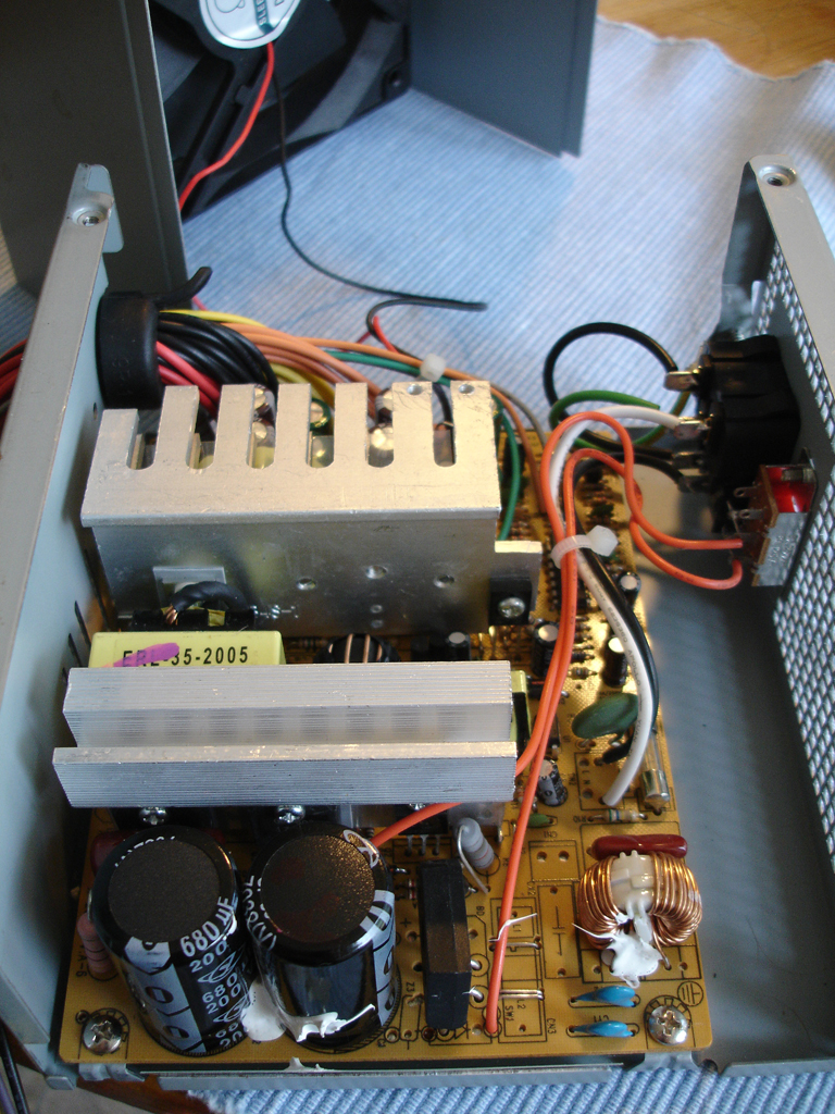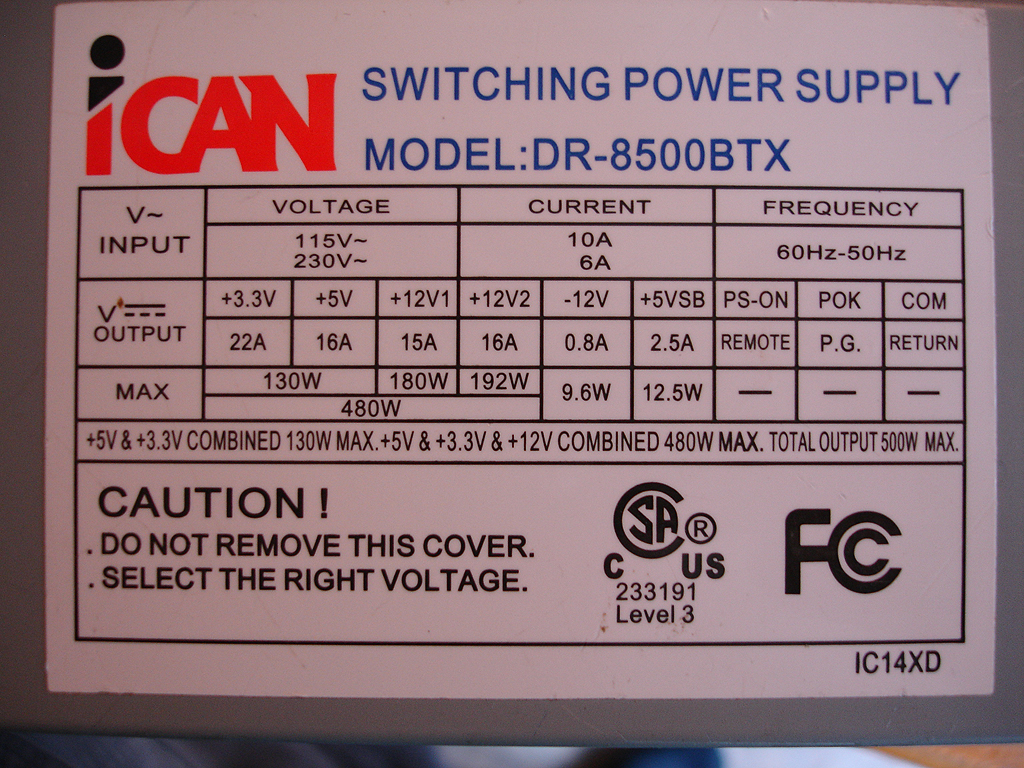 The PSU in the pics is an ICAN DR-8500BTX Rated at 500W.
