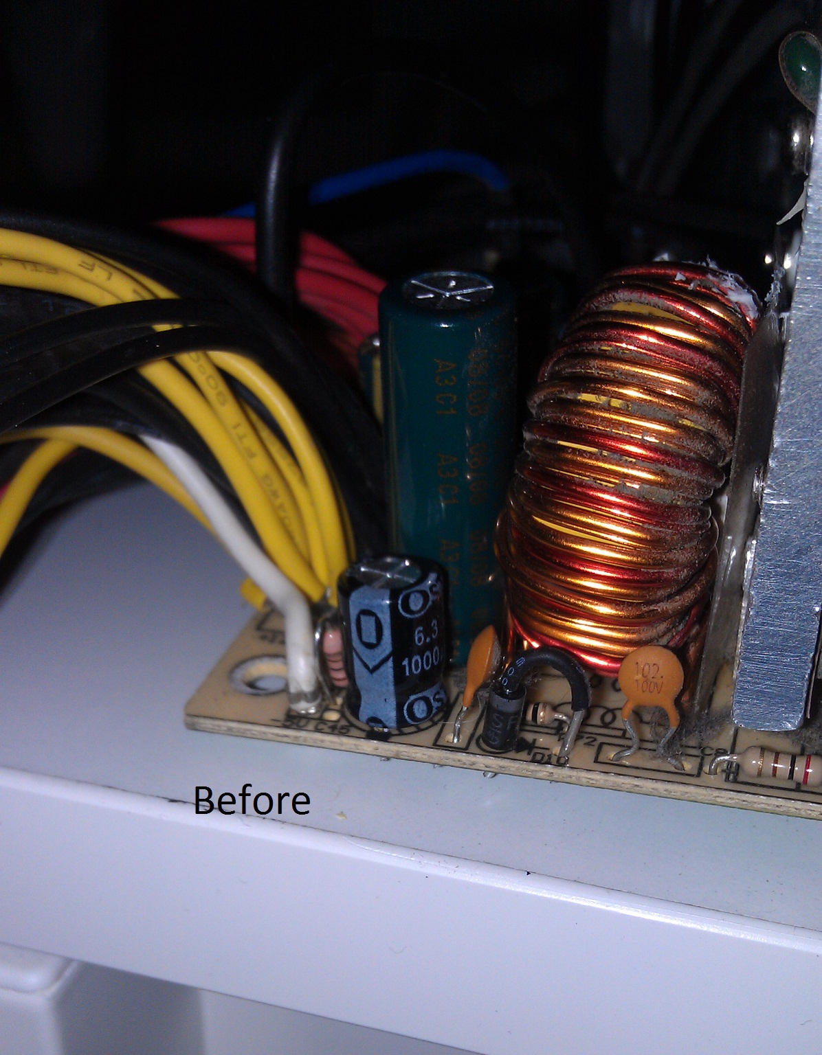 If momaka saw this, I am sure he would warn you about that resistor near the 5vsb capacitor. Try to bend the resistor away of the capacitor if you don't want it to cook the cap.