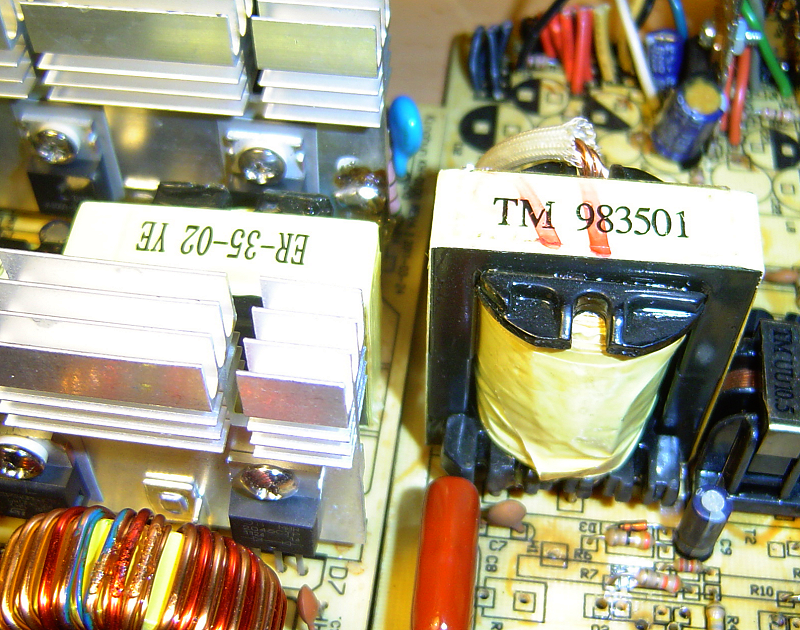 The donor PSU claimed 350W and was also half-bridge topology with two NPN transistor switchers.