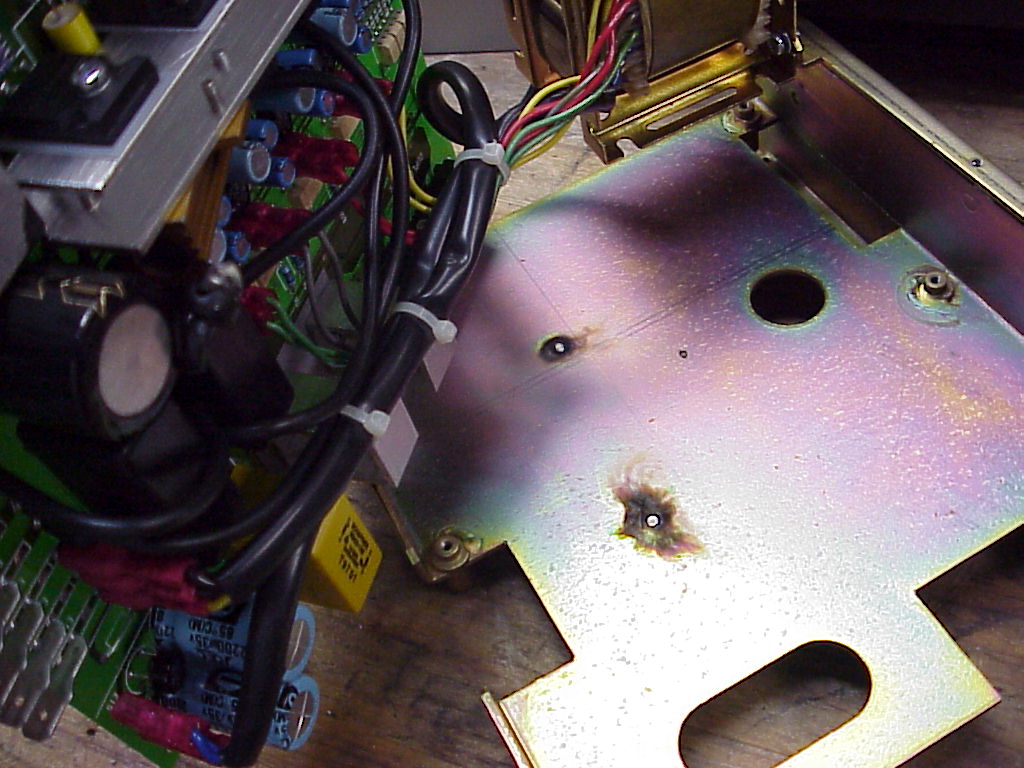 I can see a burn mark on the metal case - this once happened to our oven when the oven element shorted to the earthed case, destroying the oven thermostat.My first choice in quality Japanese electrolytics is Nippon Chemi-Con, which has been in business since 1931... the quality of electronics is dependent on the quality of the electrolytics.Comment