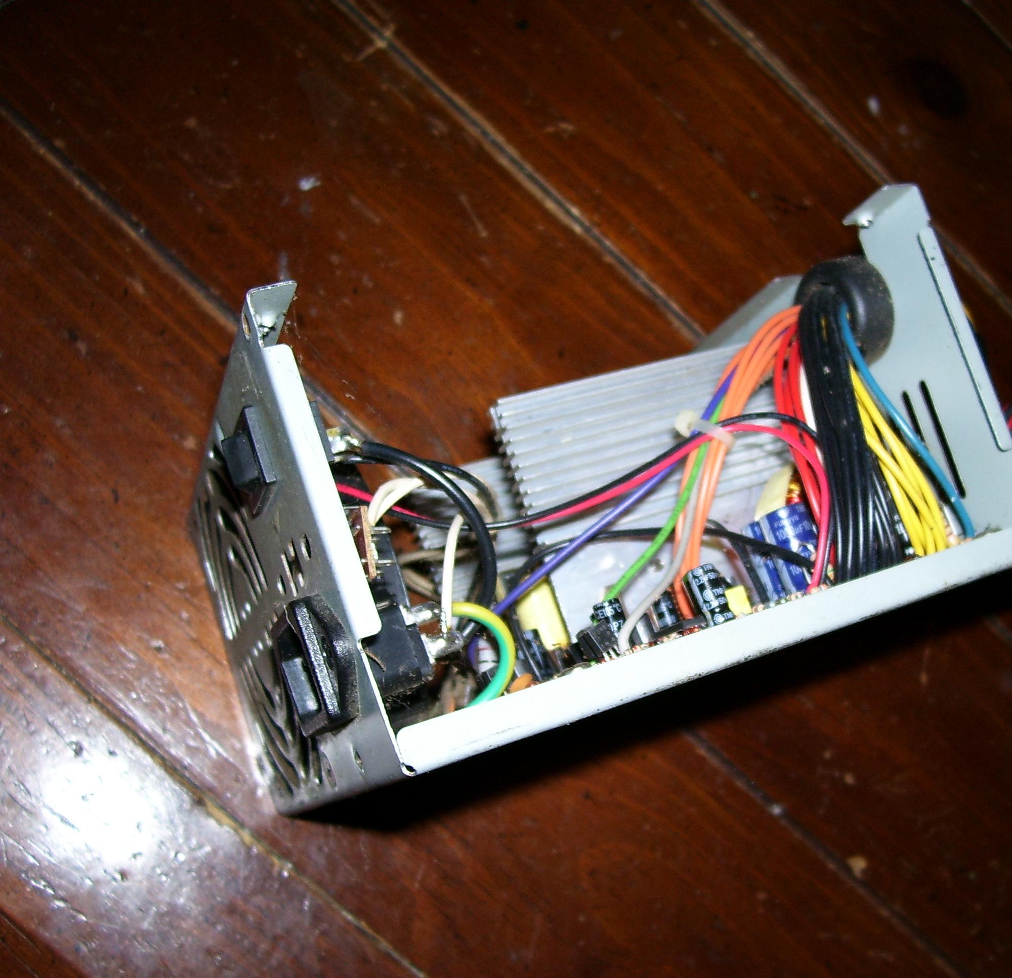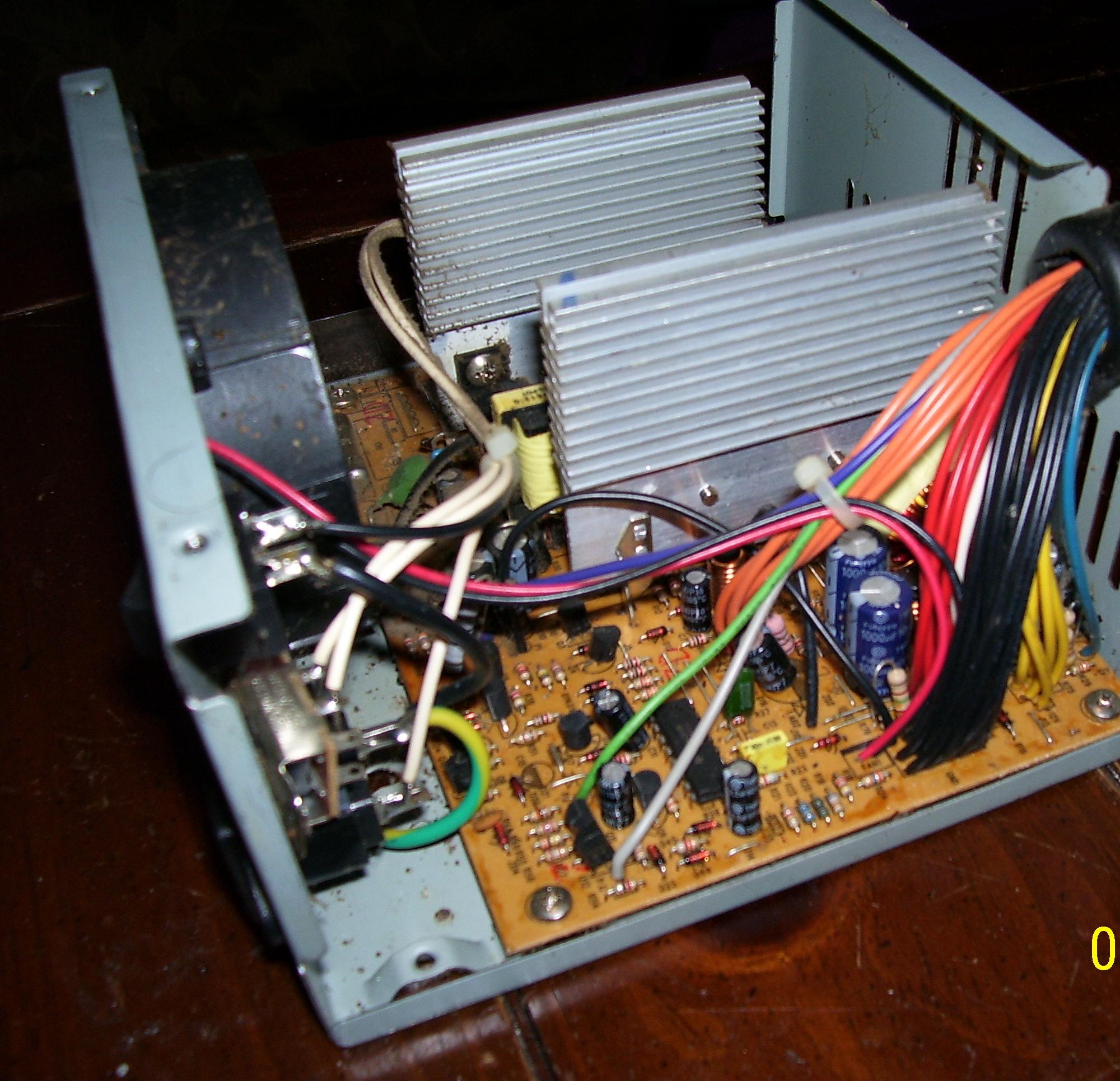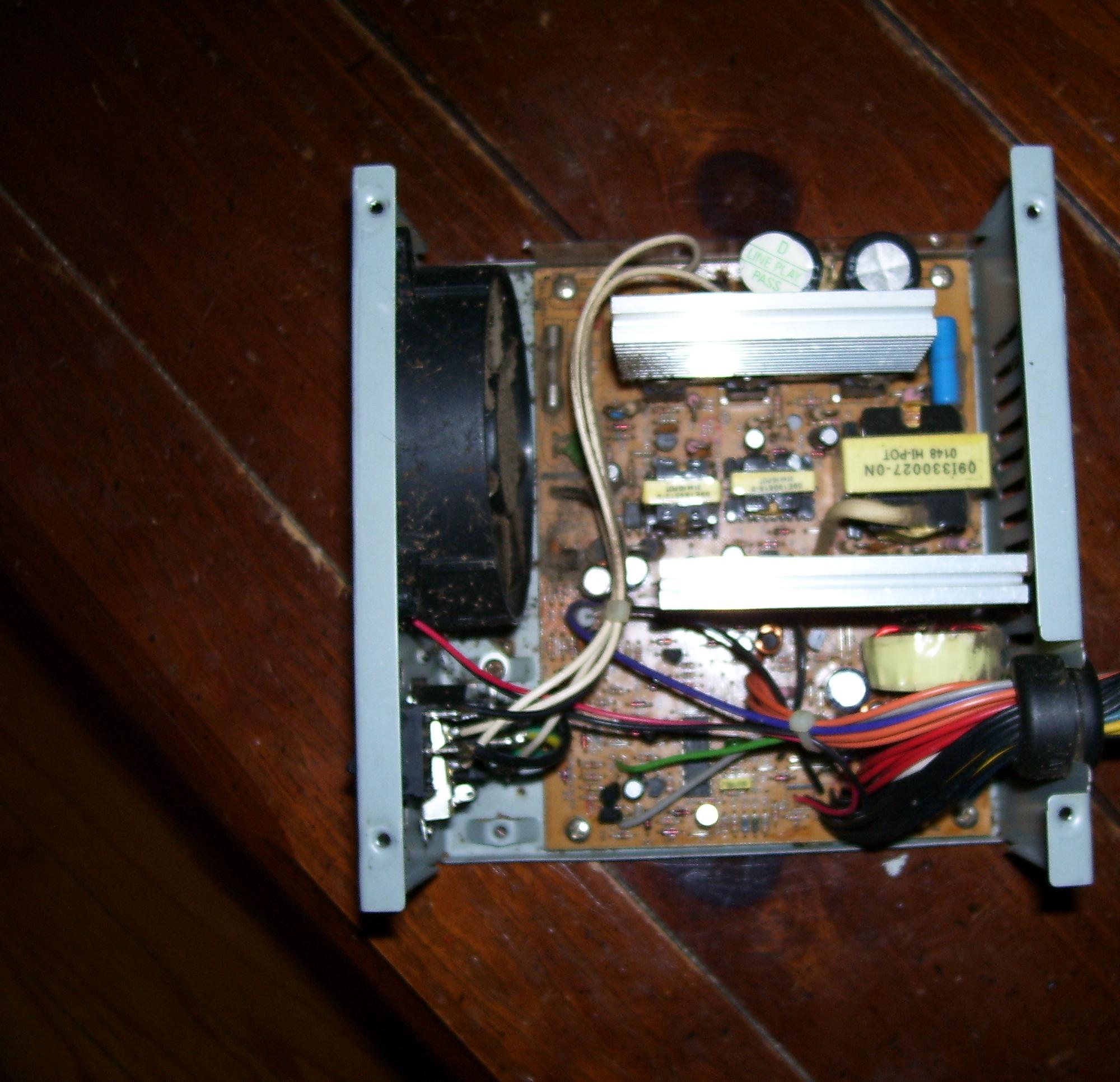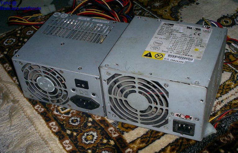 This PSU should be easy enough for the Gods of this forum to identiefy! A friend of mine gave me a call about a week ago from a place called Featherlite that builds custom coaches.He then told me that their C&C machine was outputting a high pitched beeping sound then would just shut off.About an hour and a half later plus a trip charge I was standing in front of a huge solid aluminumn case that was compleatly enclosed except for the PSU exhaust! 30 5 1/4 20's later,I had the beast opened.No thrills here,just a DOS machine running newer hardware(a.k.a MSI KT-880 Delta,2200XP,MX-400,ect.Turned out that the CPU header took a leave of absensce and caused it to shut down,nothing wrong with the PSU,as far as I can tell.T ake a look and see if you can identify this dinosaur,and wtf is with all these older MSI boards?