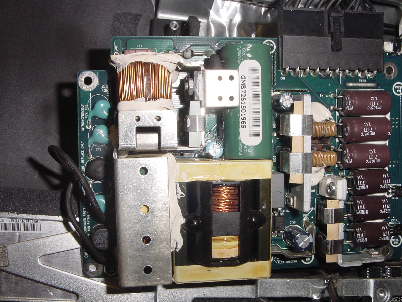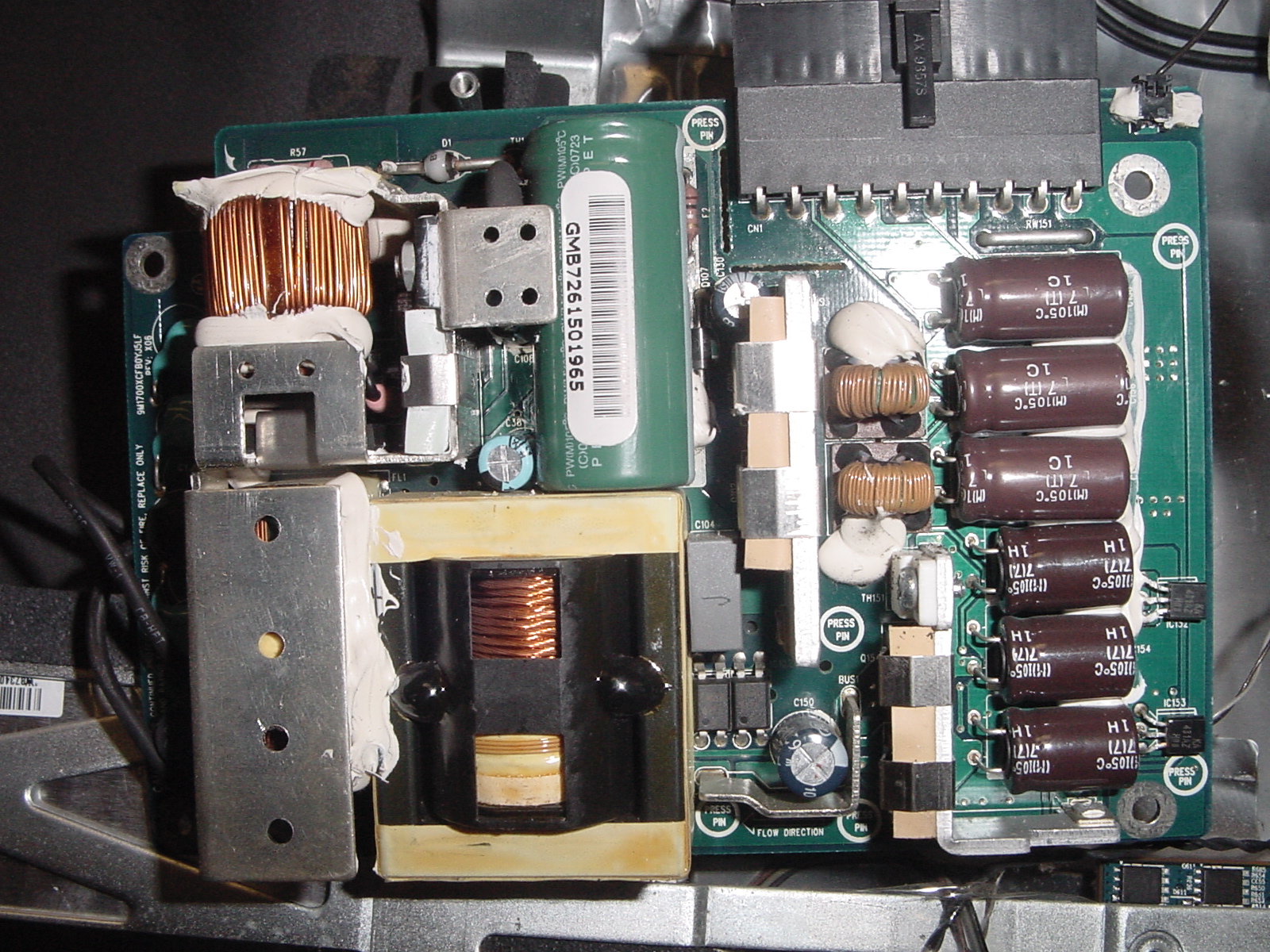 The 12v power supply out put was not steady, going between 9~12v, LED on the main board was blinking, this is due to bad start up cap c108 (22uf 50v).