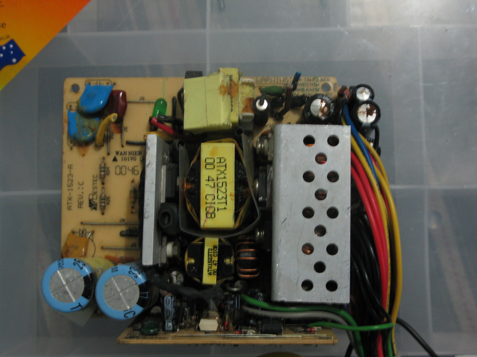 Here's my version of the Bestec ATX-1523F (F for FAIL maybe?). Apologies for the poor quality photos, old dim CFL still hasn't been changed out.