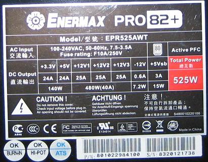 Hi, I have two ENERMAX failure in repair, a PRO82 + and a EG565AX-VE.