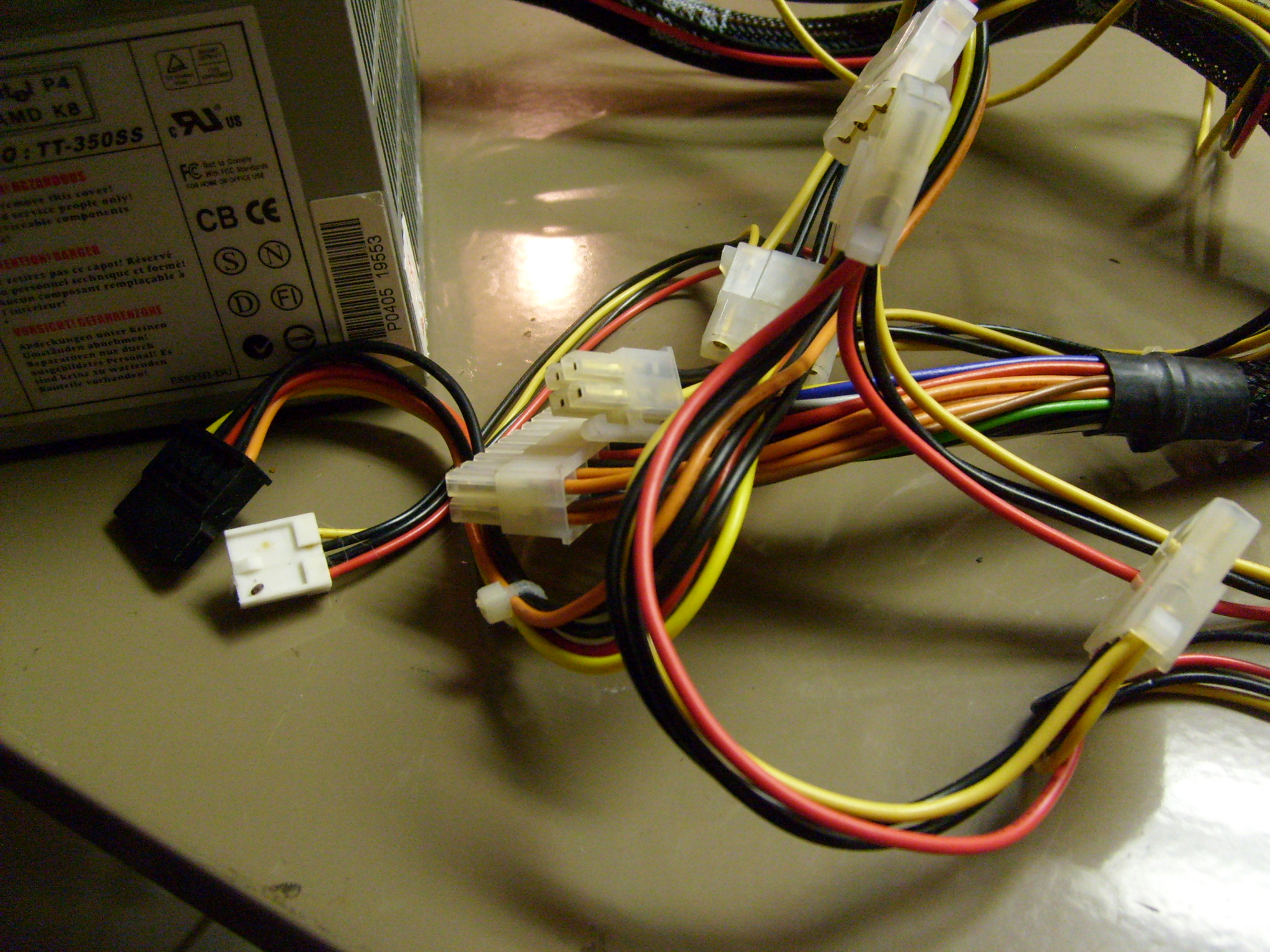 It has an older set of plugs, mostly moxlex/berg, but with a single SATA:
