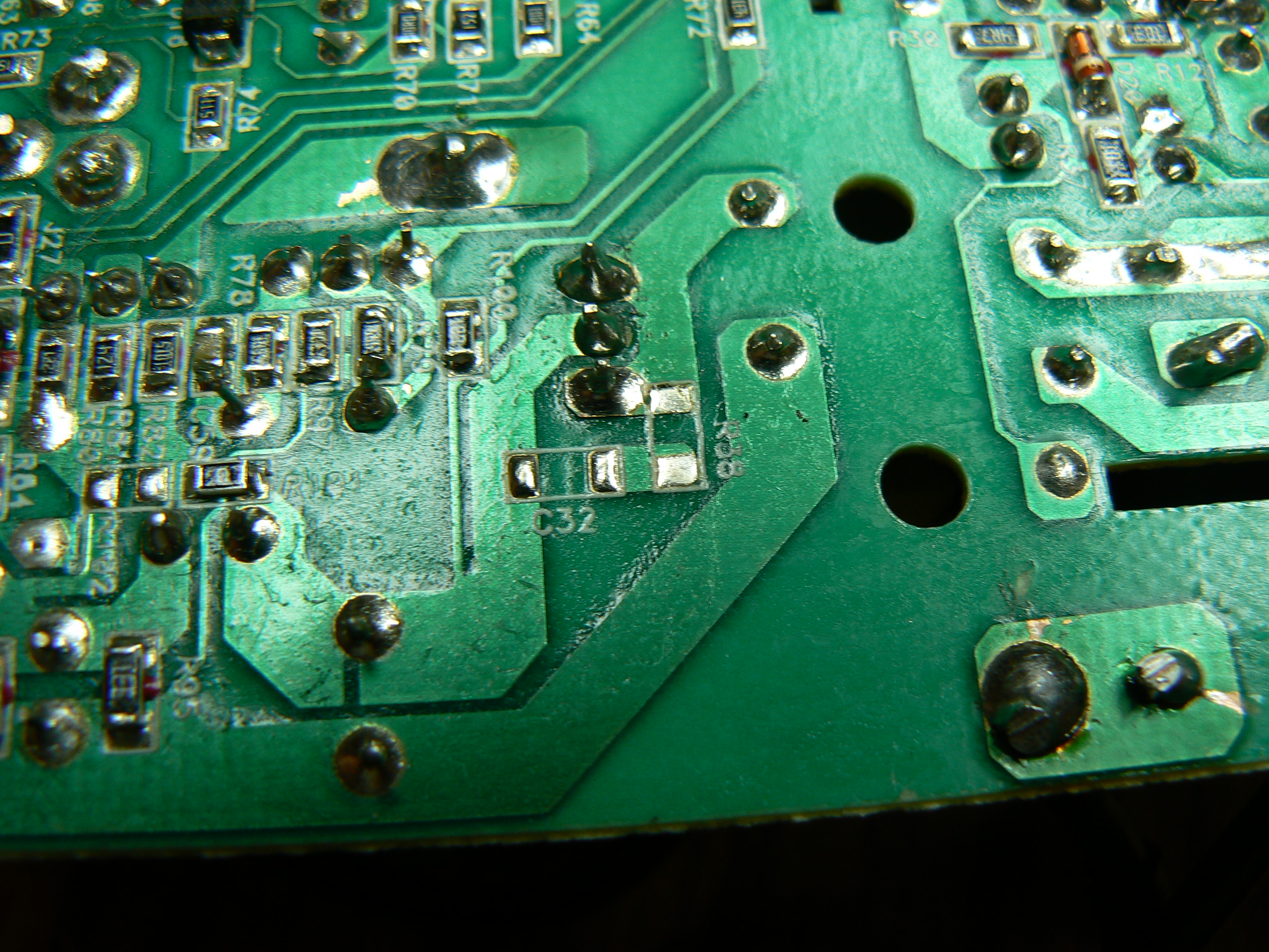 Conservation of energy- 120V at 15A is 1800VA, but even 8A at 400V is 3200W. Yes, watts, since it's DC after the PFC. Unless the PFC cap opens or the PFC inductor shorts, that diode won't. Unless it's loose and overheats, but that's another story.